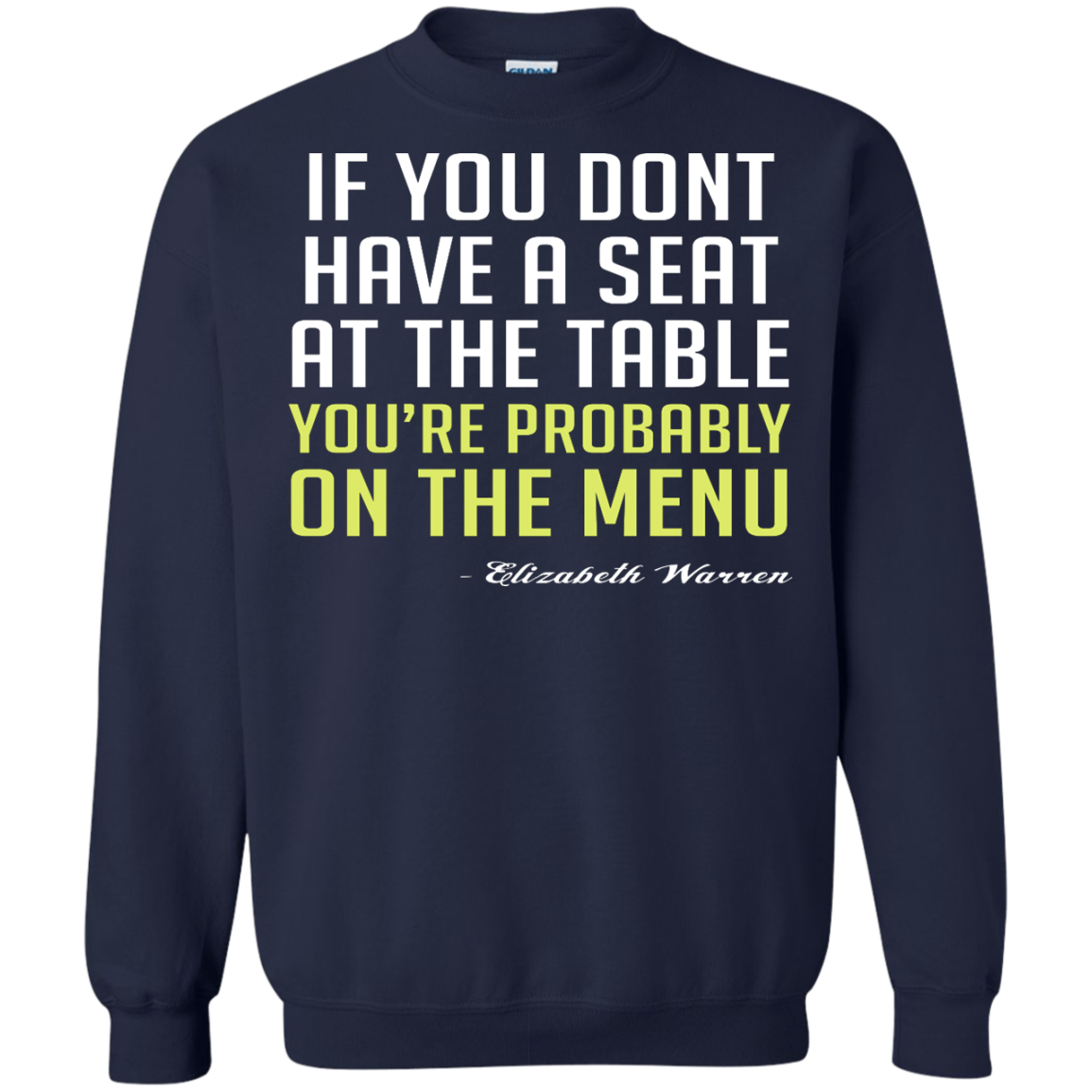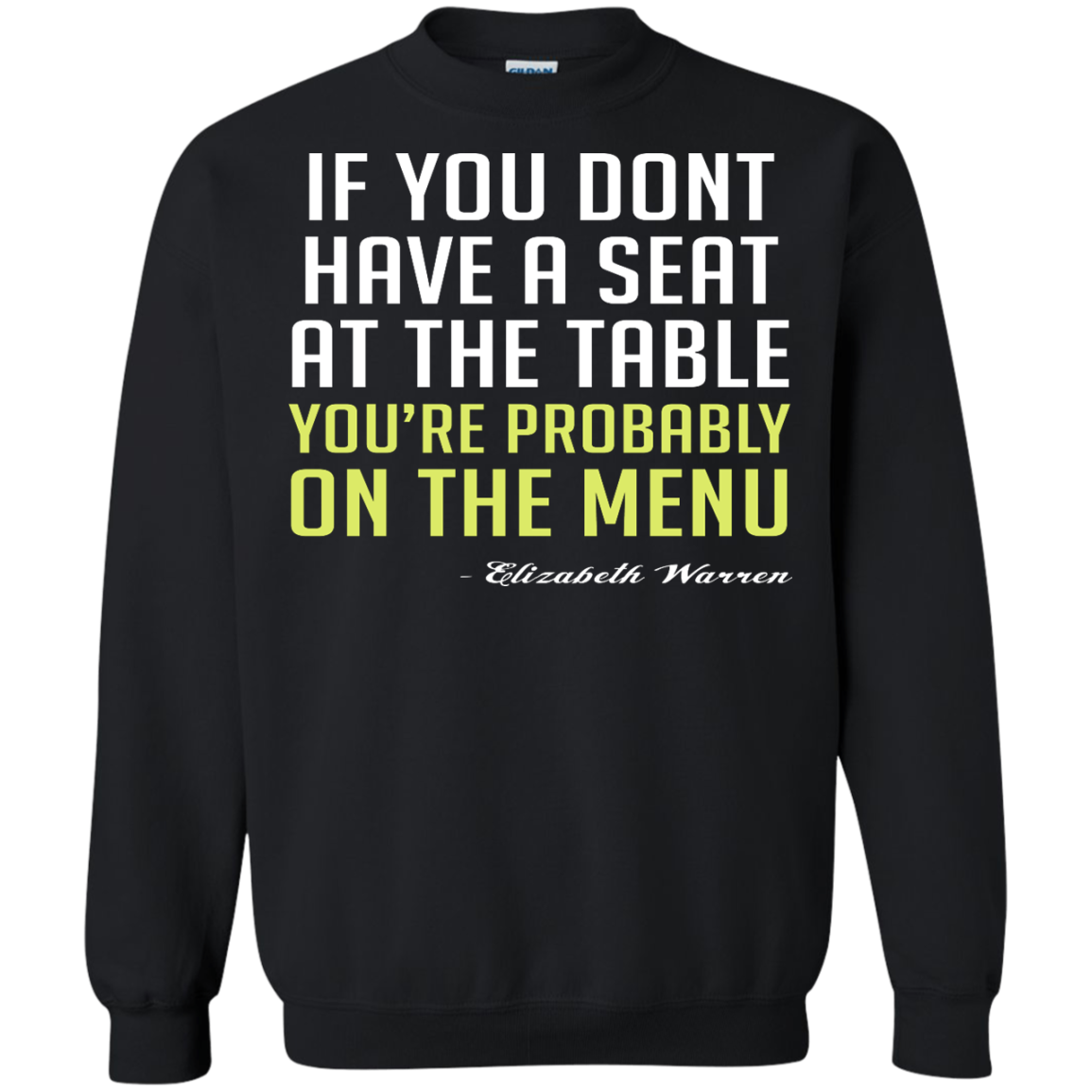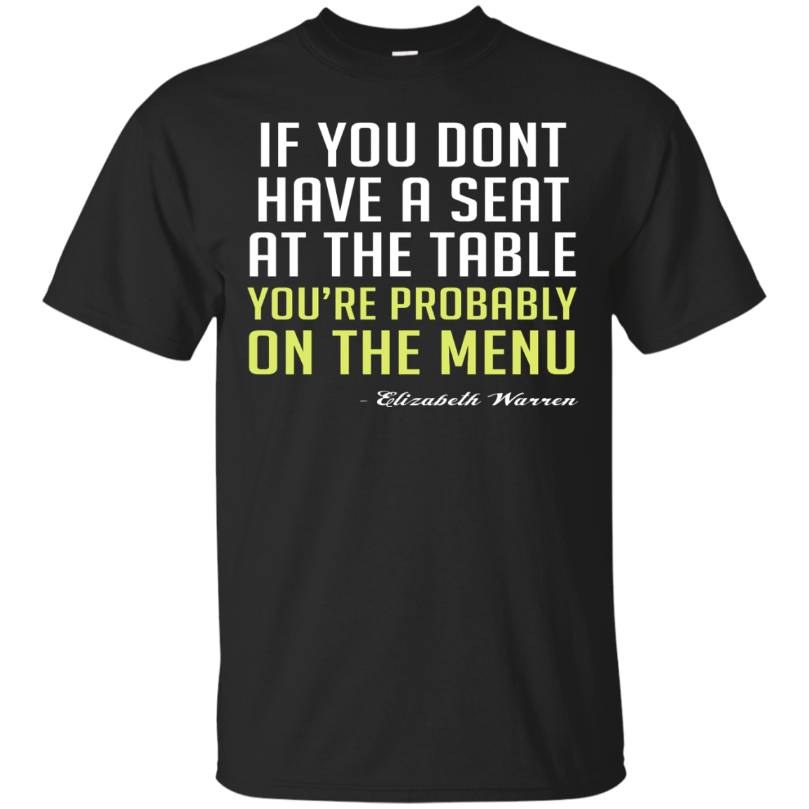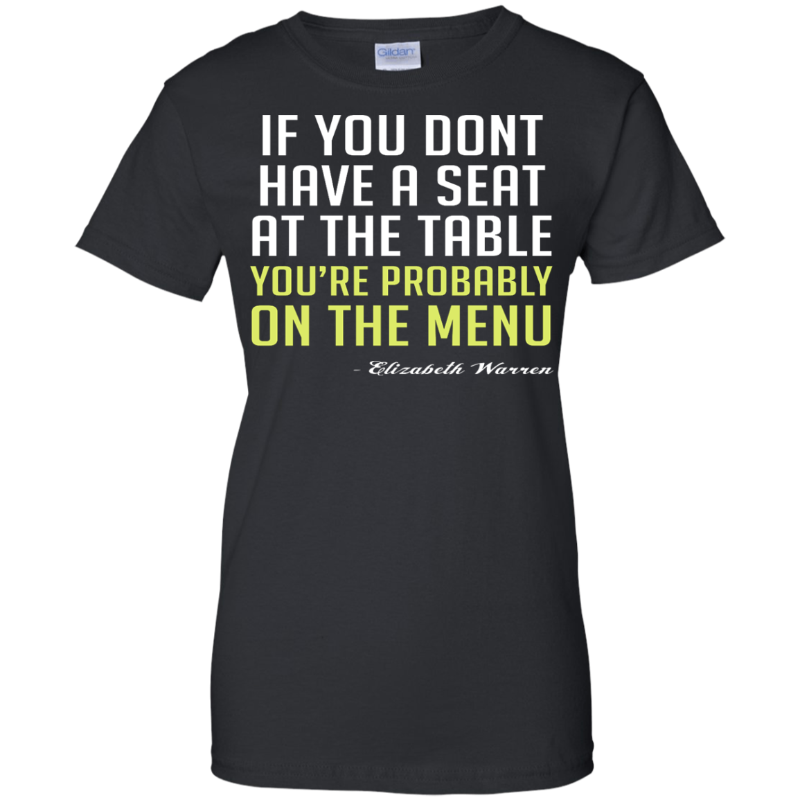 Elizabeth Warren: "If you don't have a seat at the table shirt, you're probably on the menu". Available in tees, tanks, sweater.