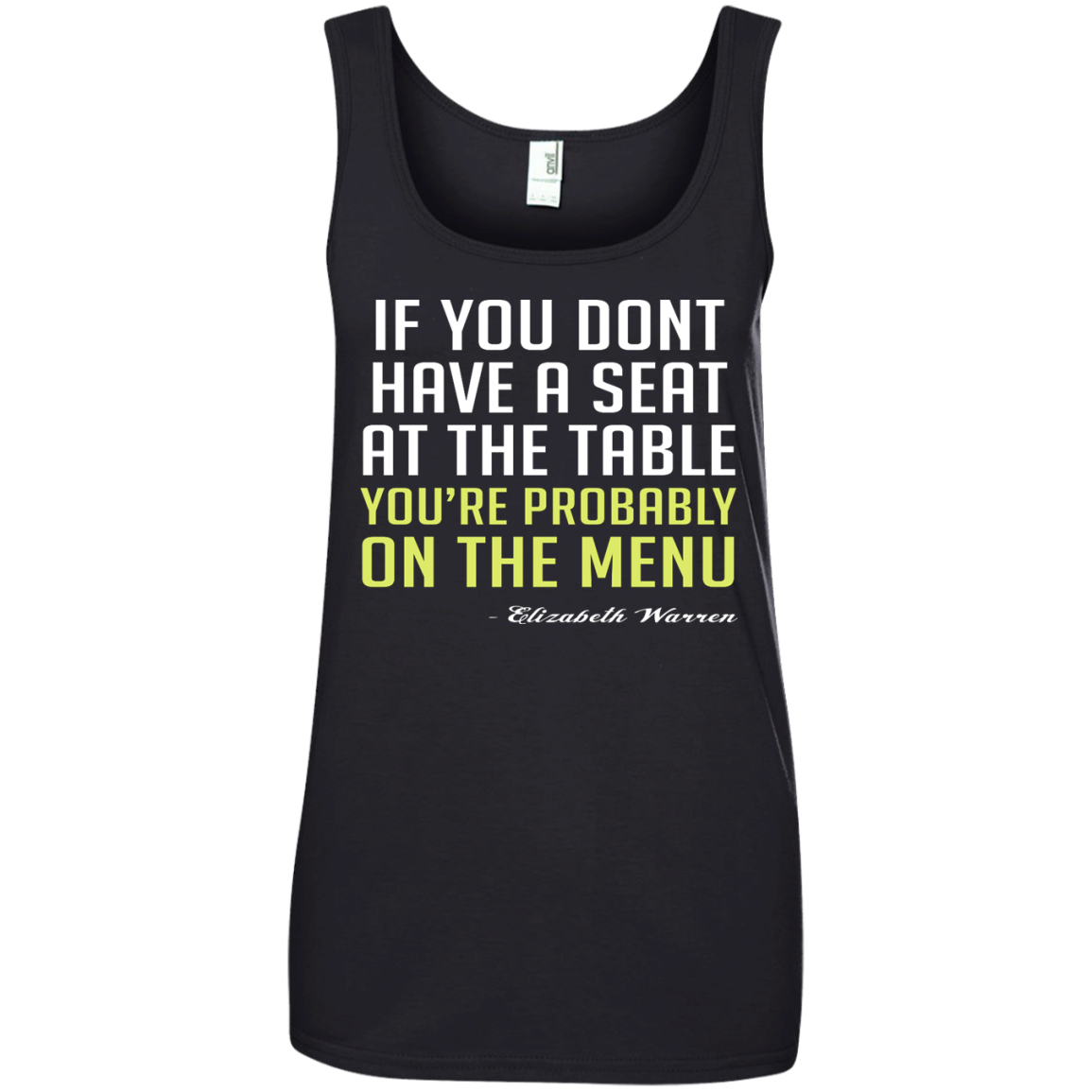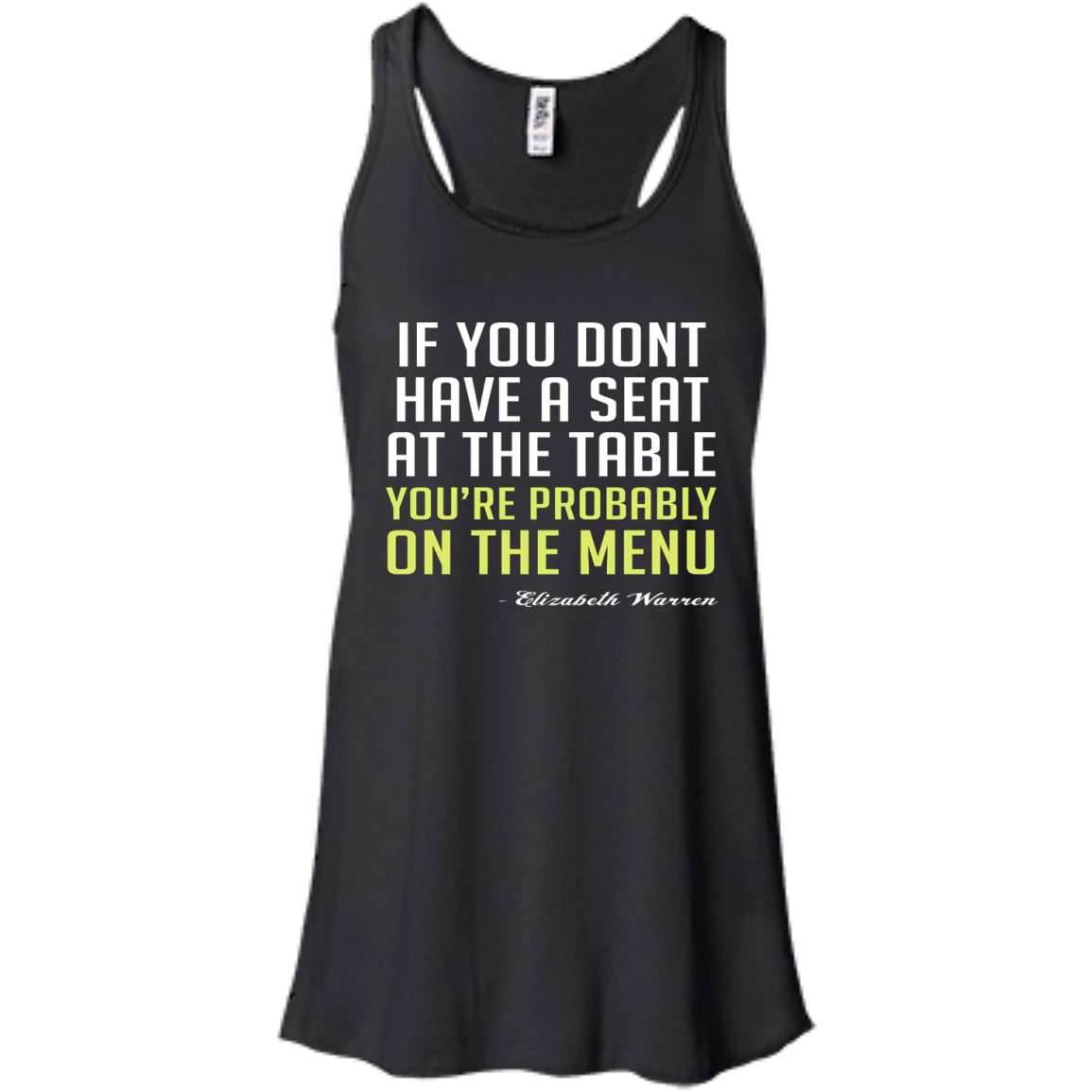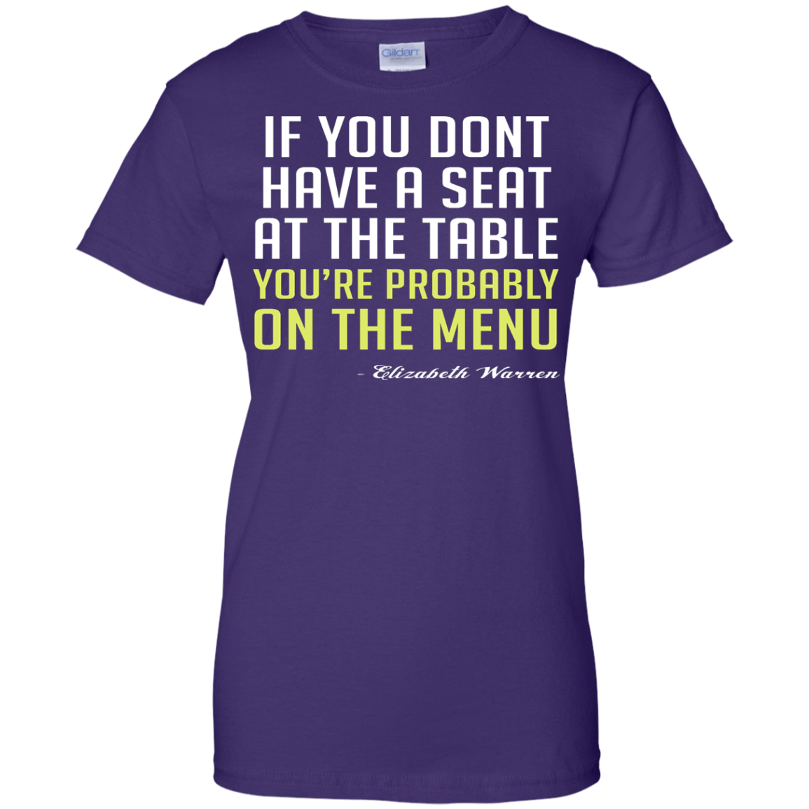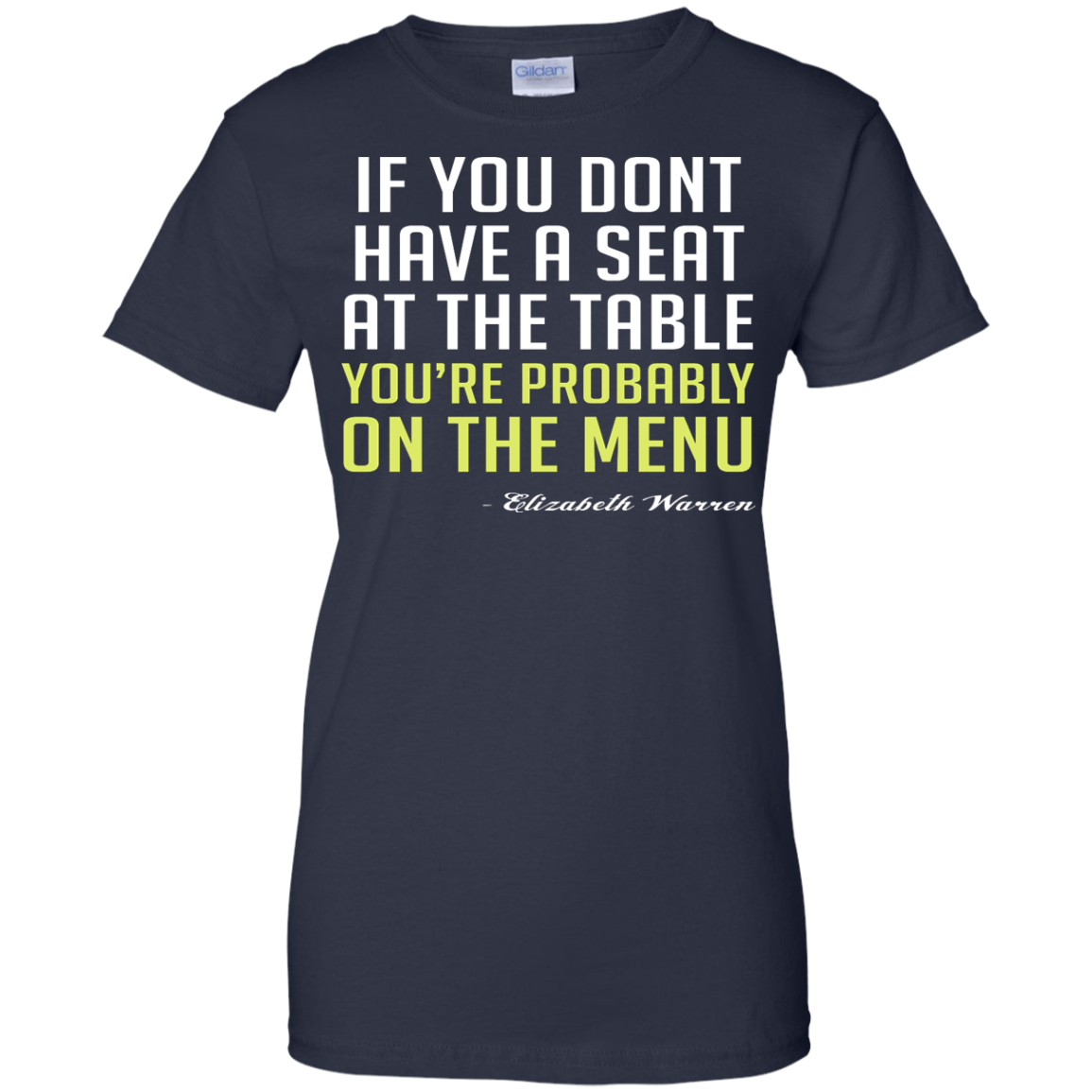 Elizabeth Warren: "If you don't have a seat at the table shirt, you're probably on the menu". Available in tees, tanks, sweater.