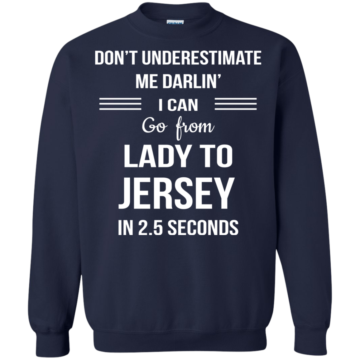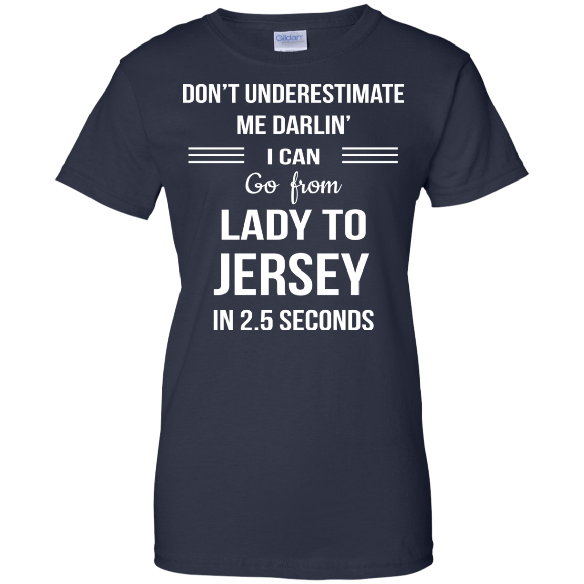 • Don't underestimate me darlin' I can go from Lady to Jersey in 2.5 seconds Shirt, Hoodie, Tank