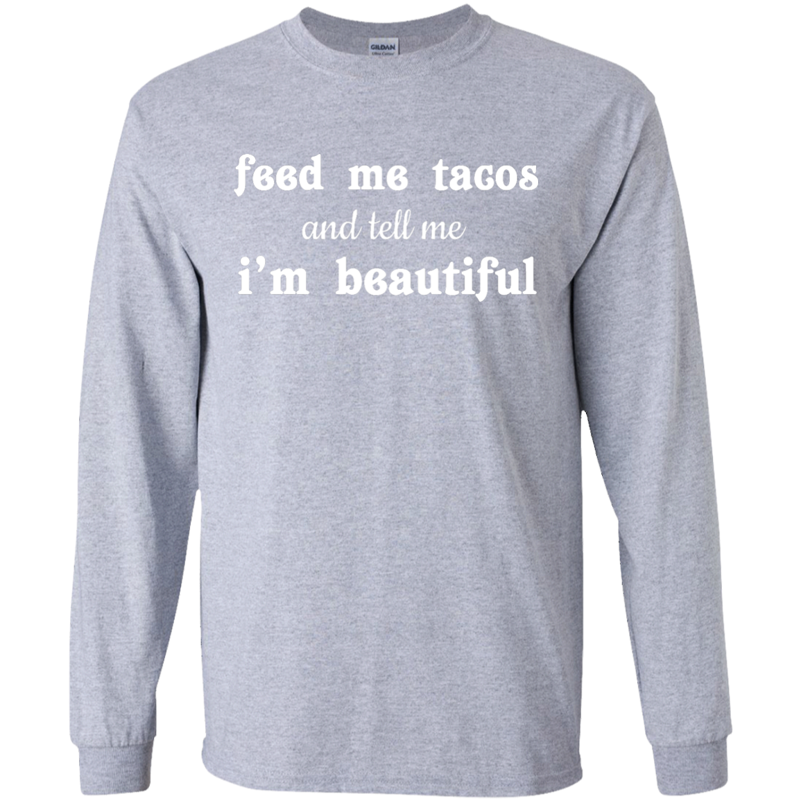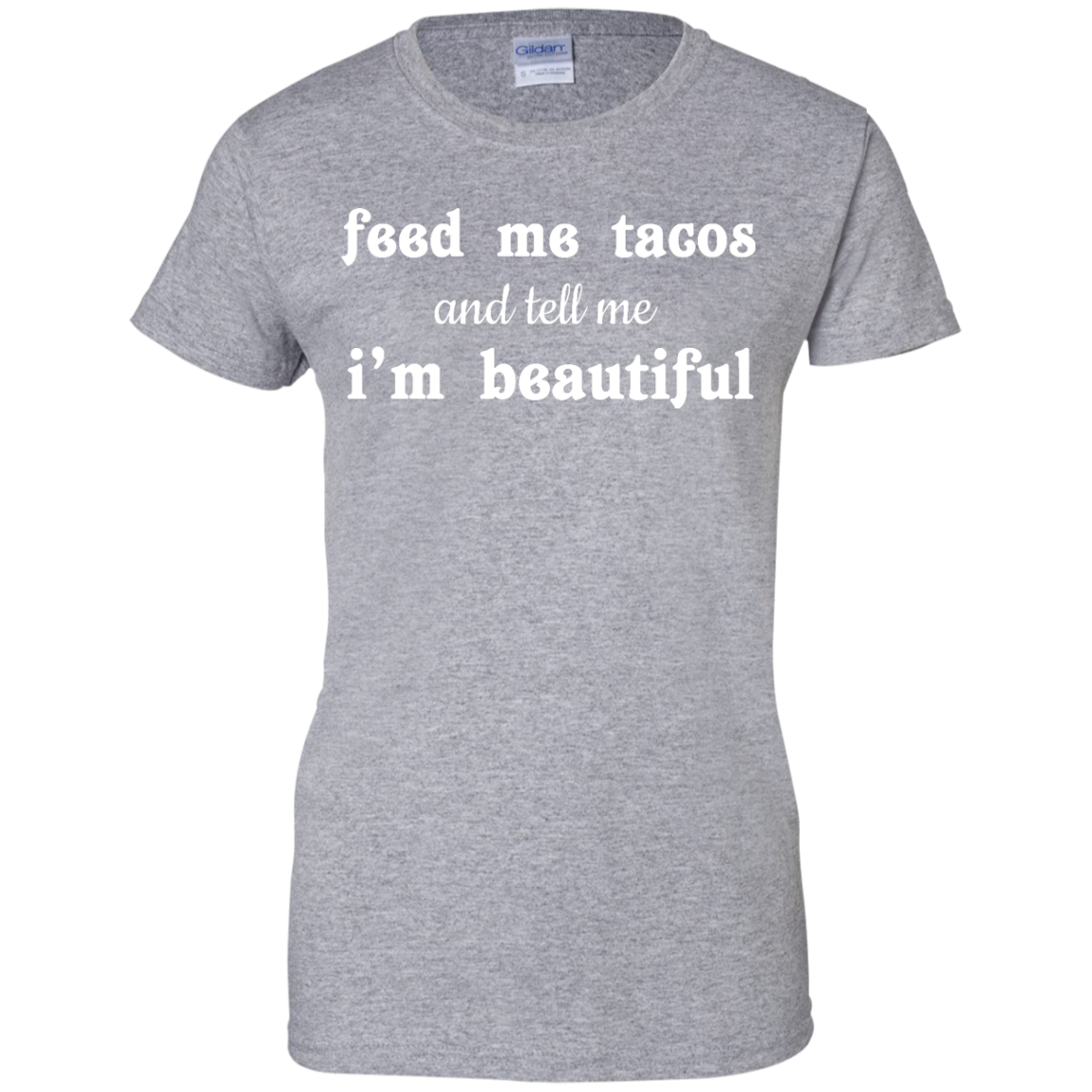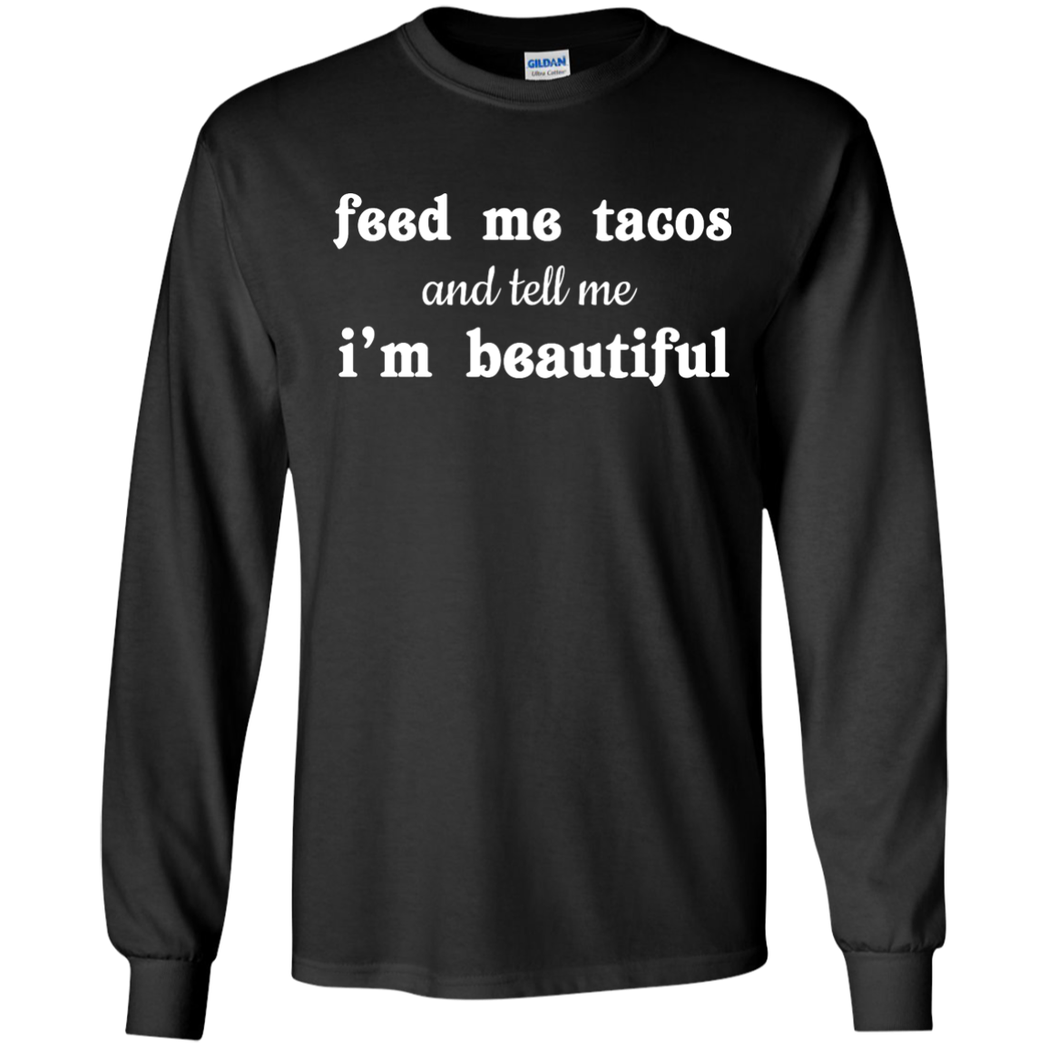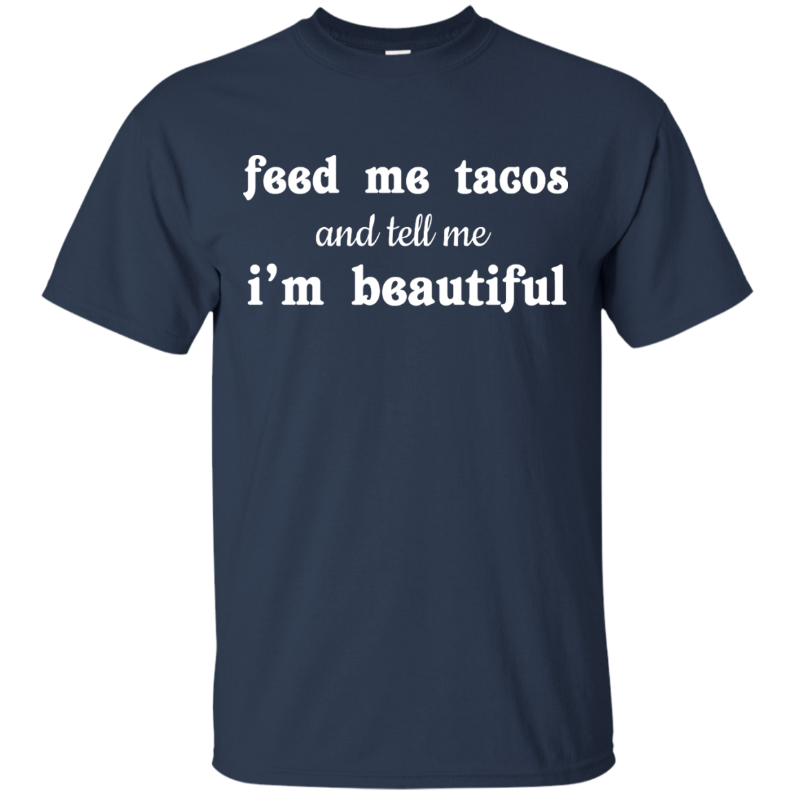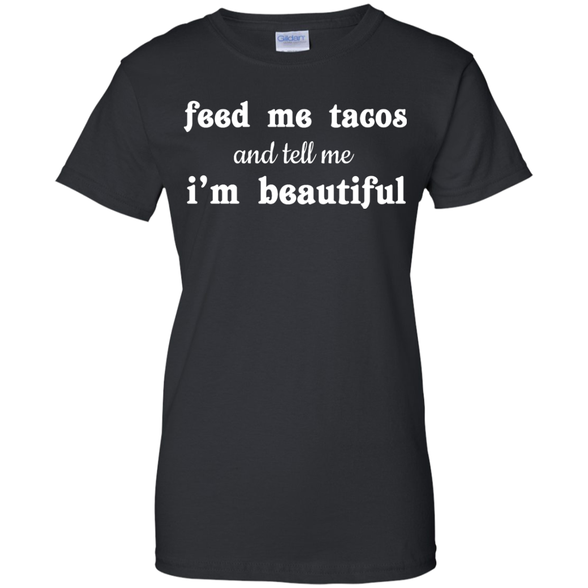 Funny t-shirt: Feed Me Tacos and Tell Me I'm Beautiful shirt, tank, racerback, long sleeve available.