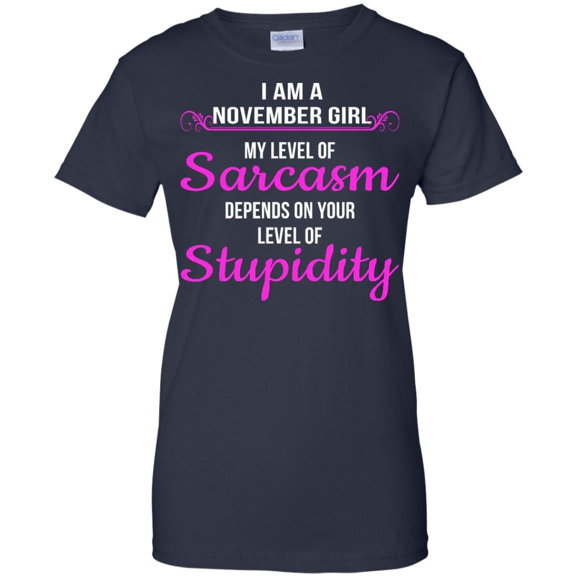 I am a November girl My level of sarcasm depends on your level of Stupidity shirt