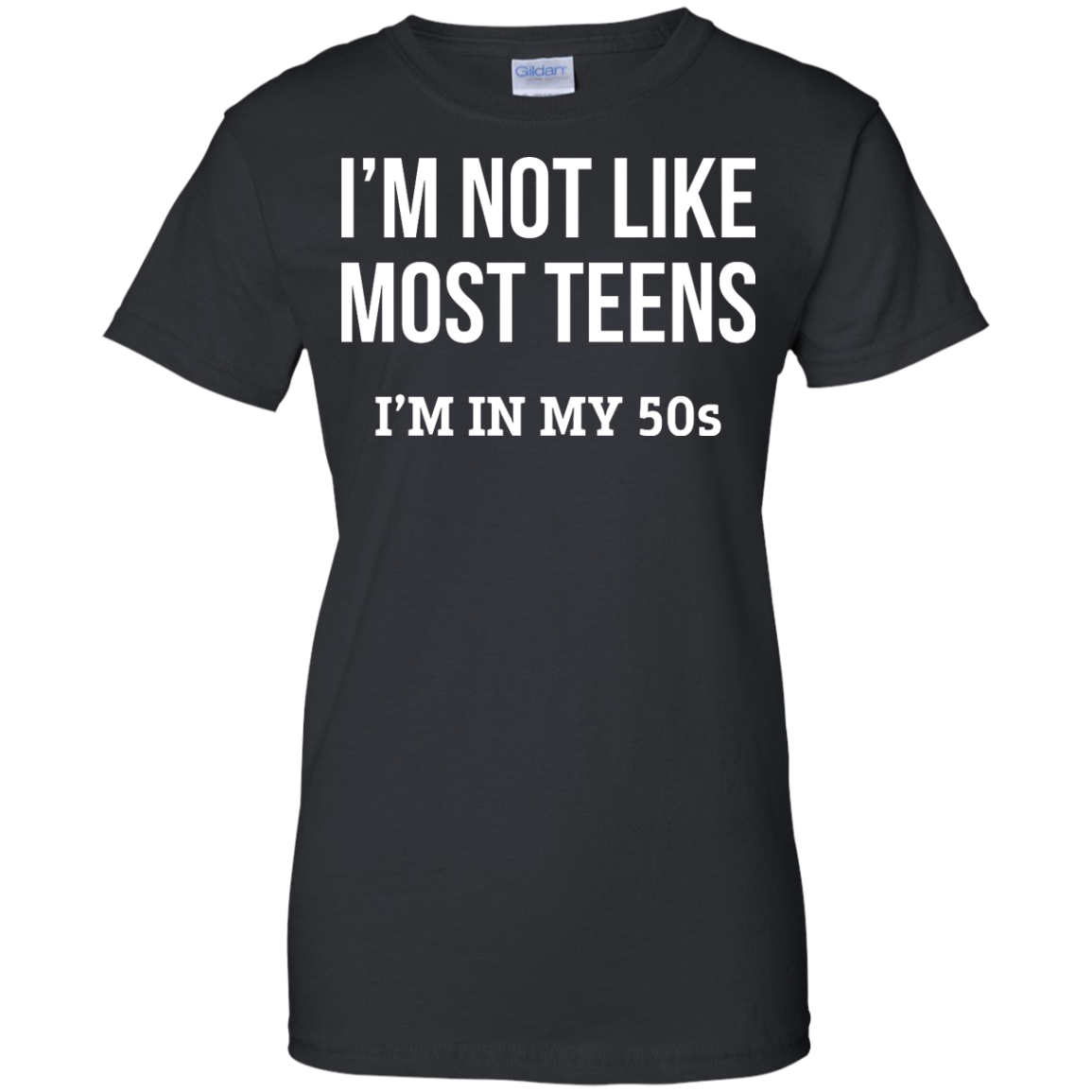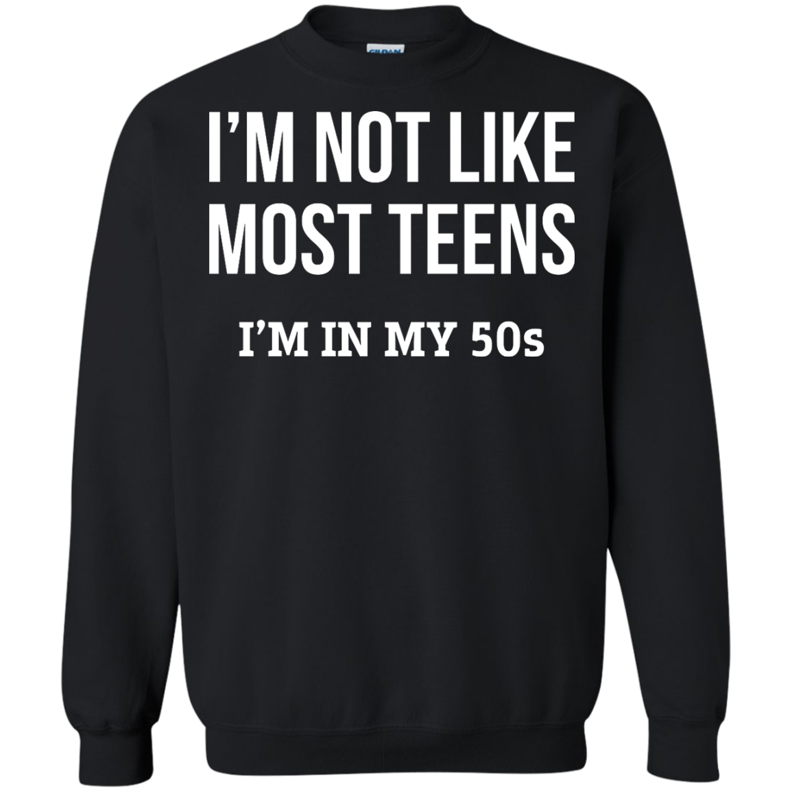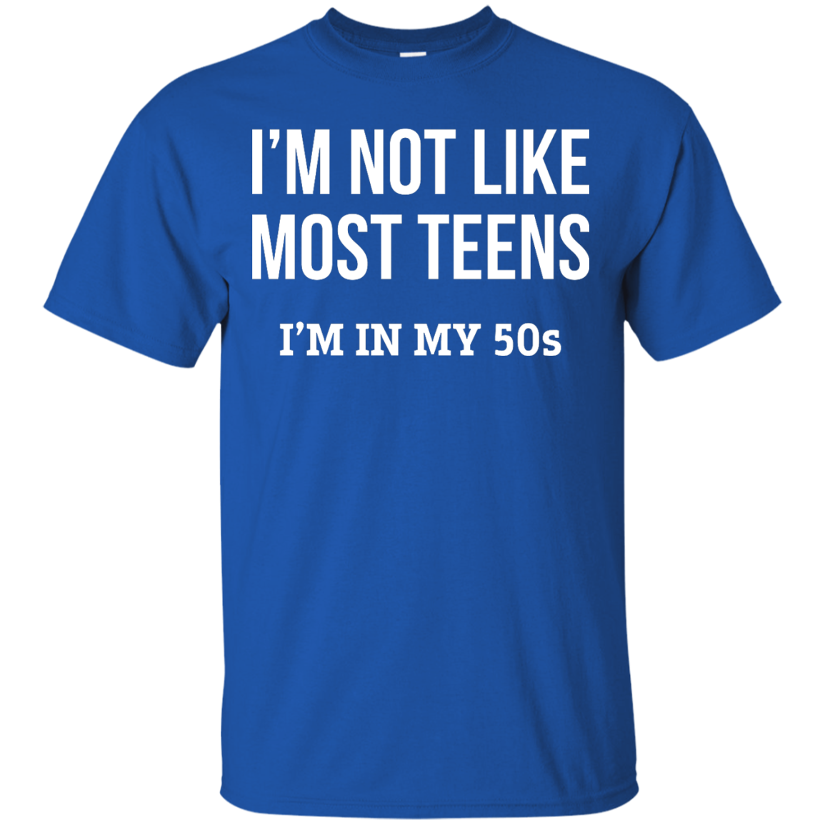 I'm not like most teens I'm in my 50s shirt. Is this quote reflect you? Tee, racerback, sweatshirt available.