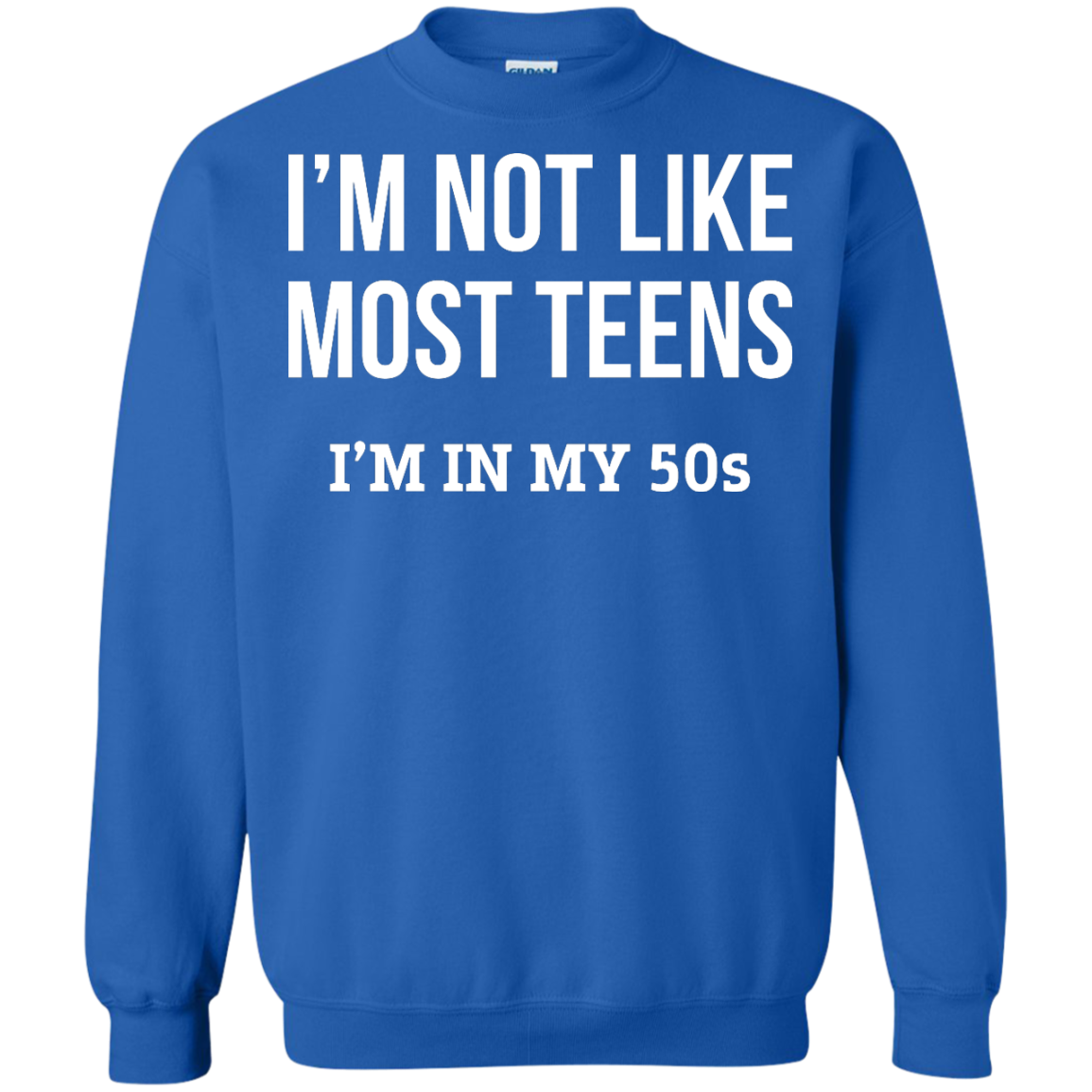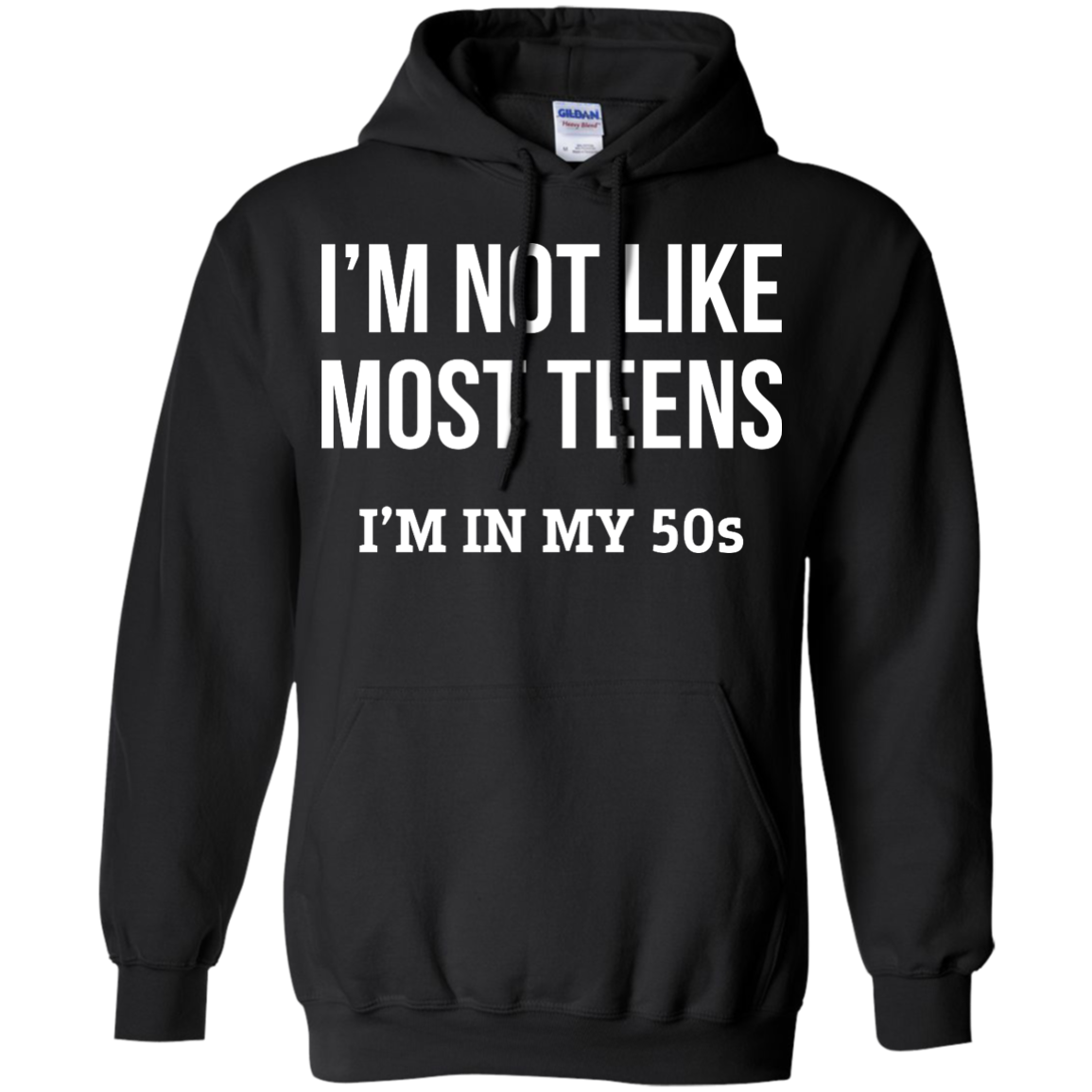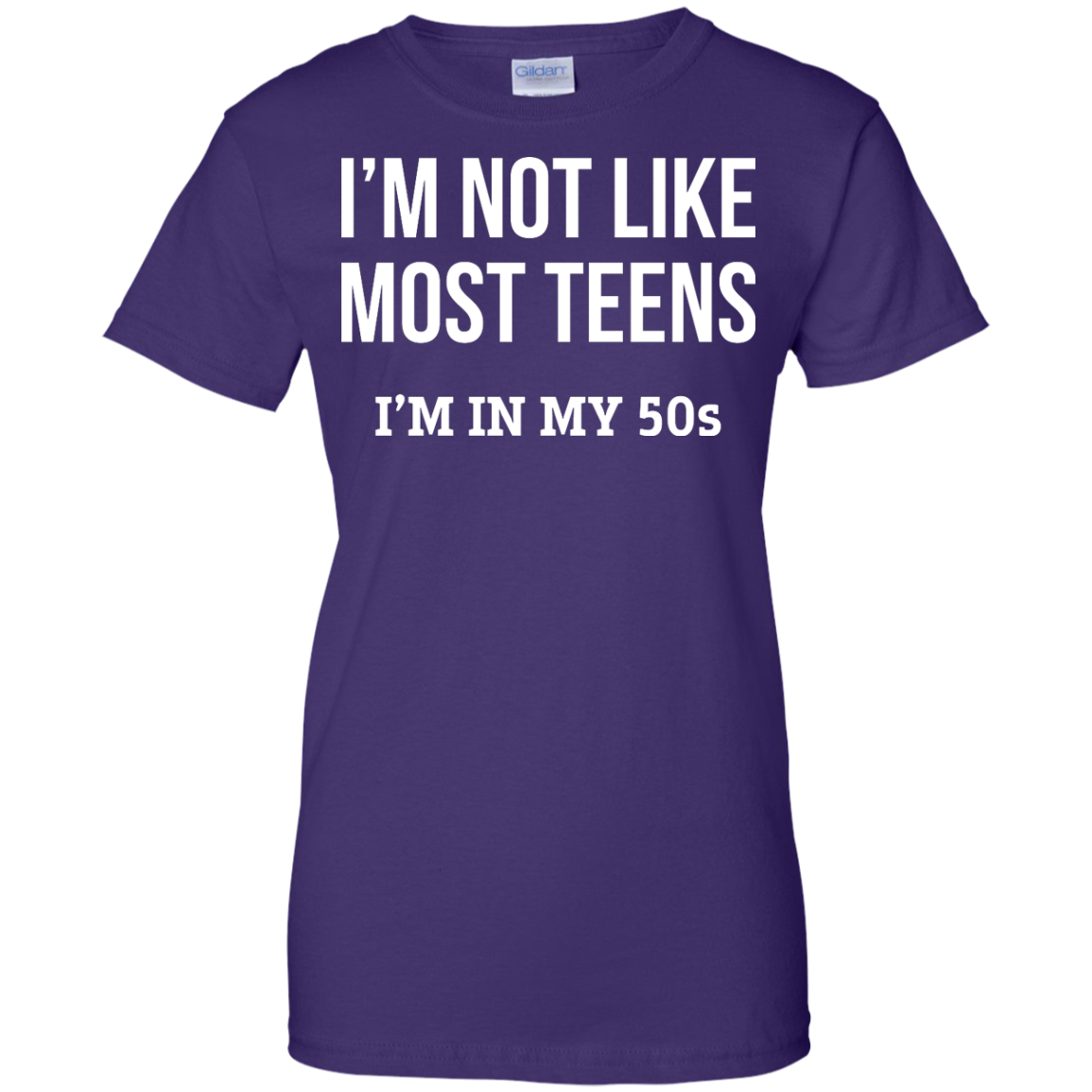 I'm not like most teens I'm in my 50s shirt. Is this quote reflect you? Tee, racerback, sweatshirt available.