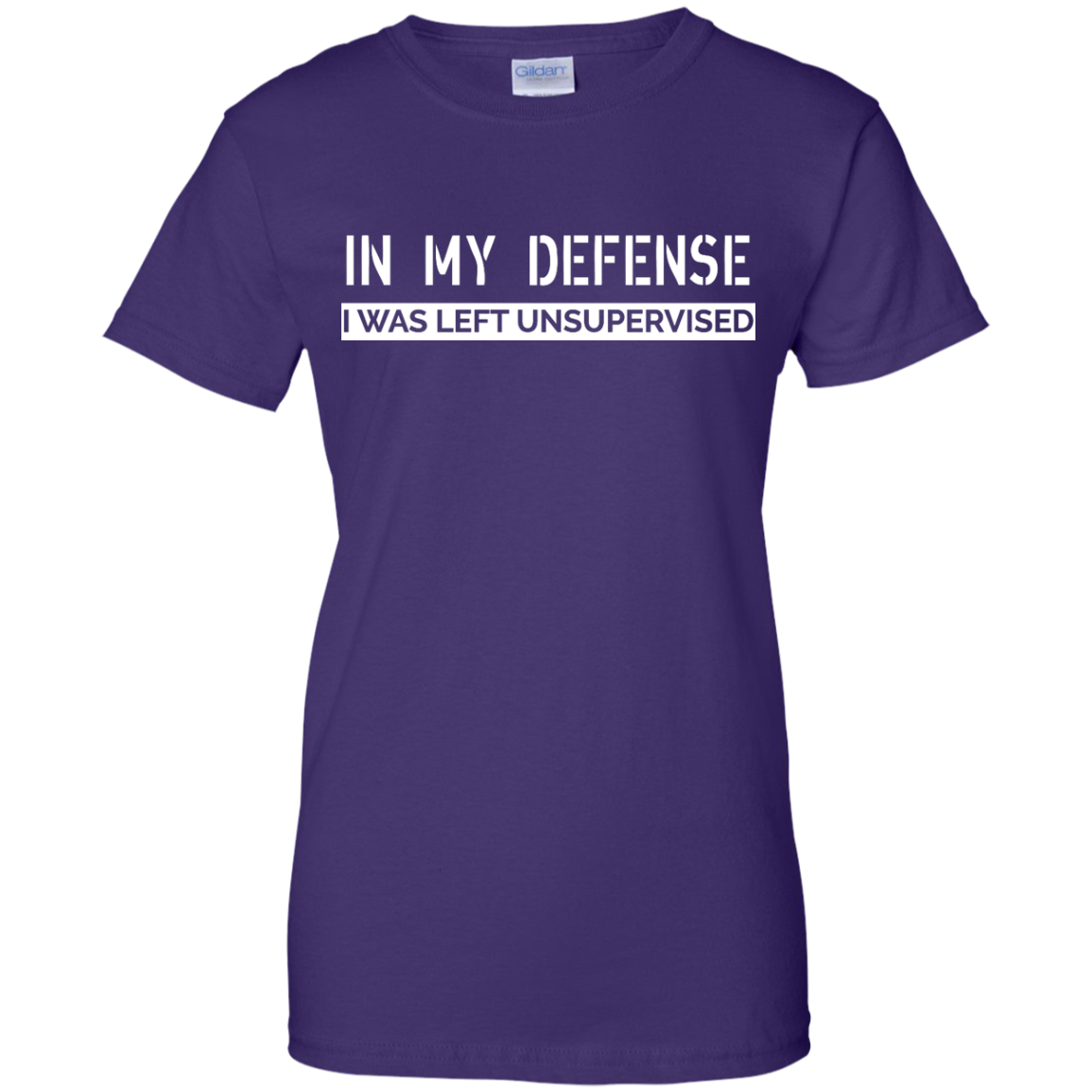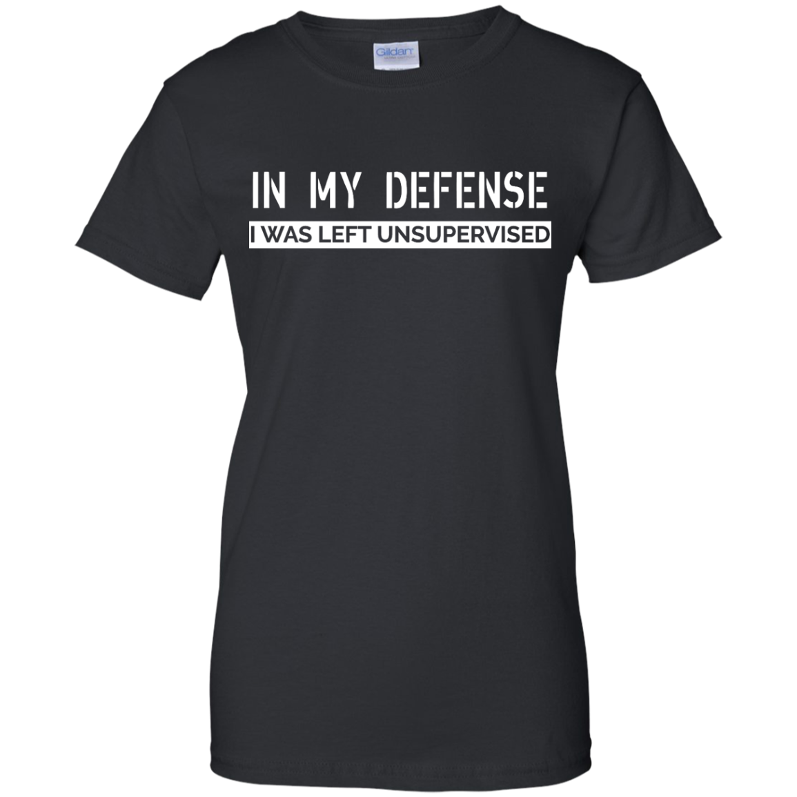 Humor - Funny shirt: in my defense, I was left unsupervised. Tees, tanks, hoodies and sweaters available.