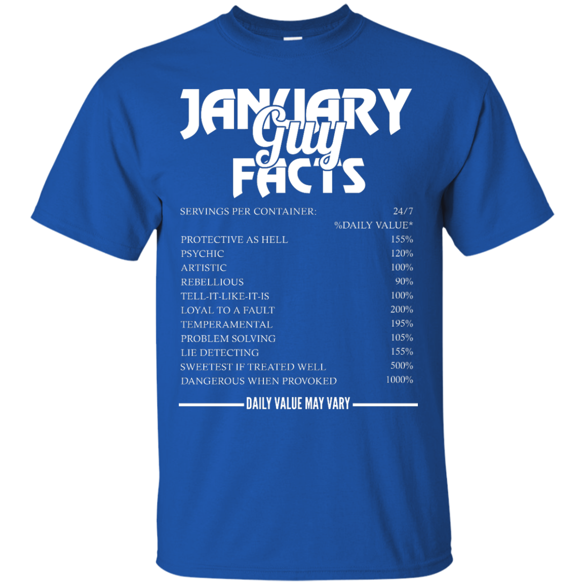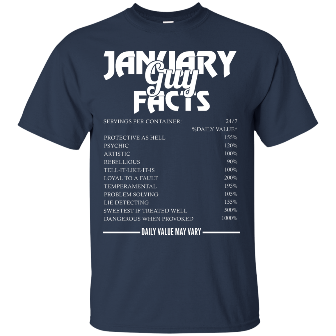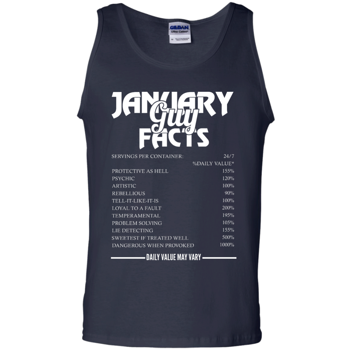 January guy facts servings per container shirt, tank, long sleeve... available.