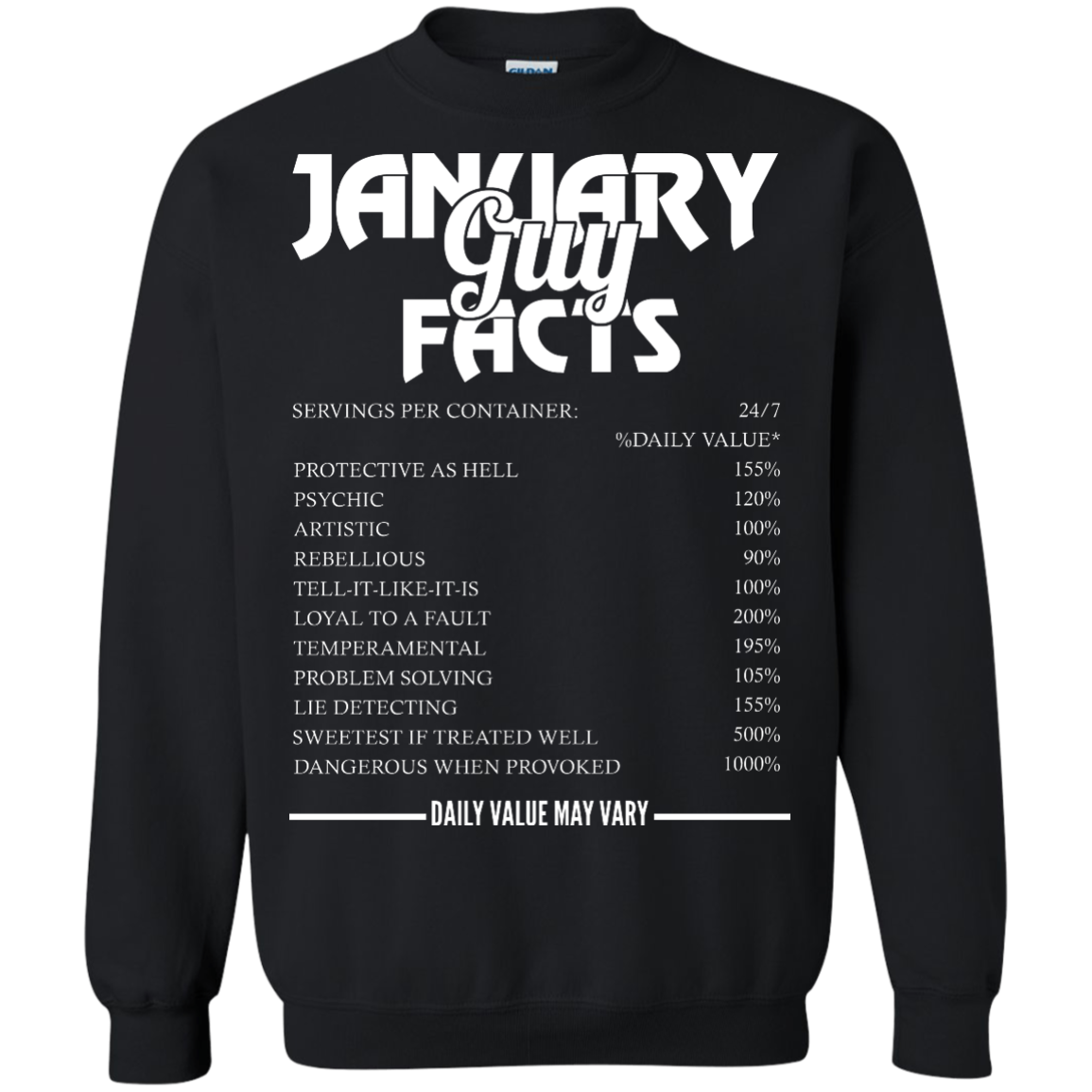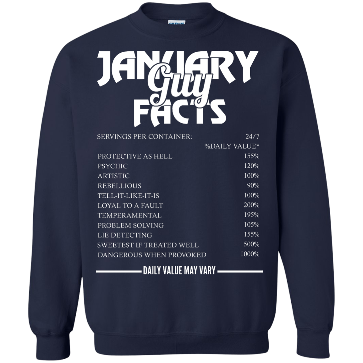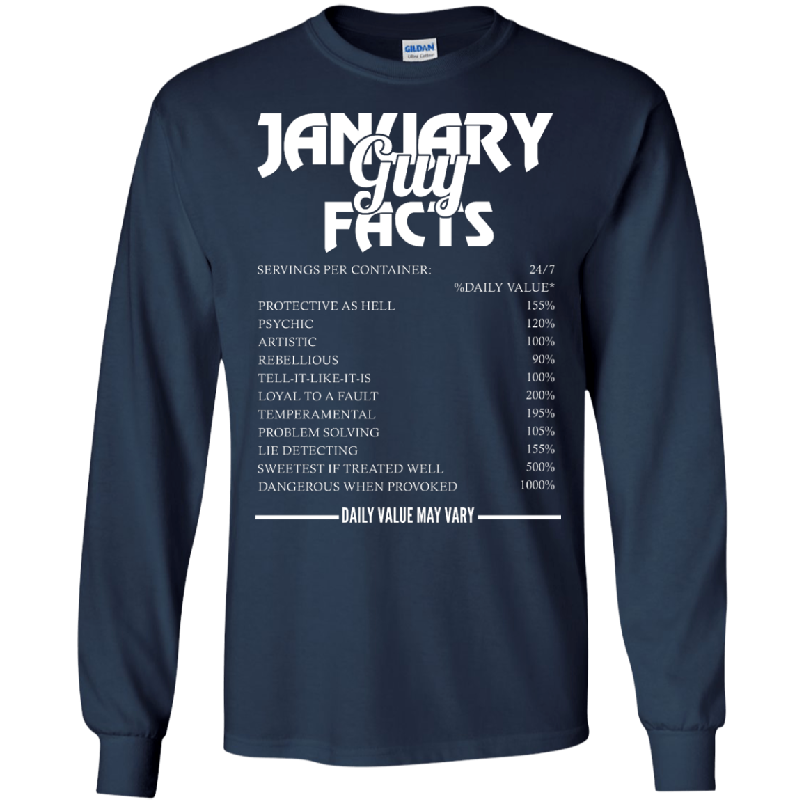 January guy facts servings per container shirt, tank, long sleeve... available.