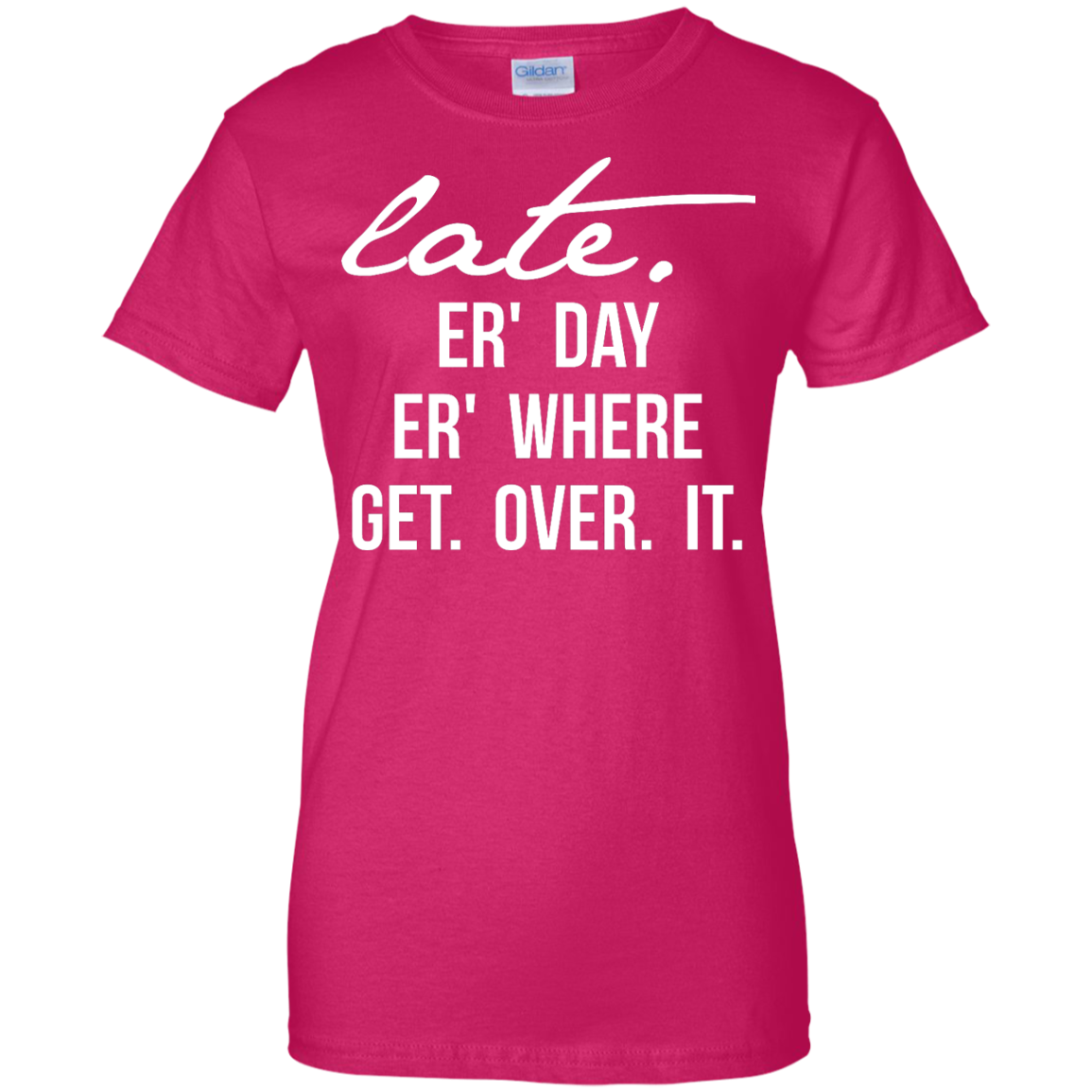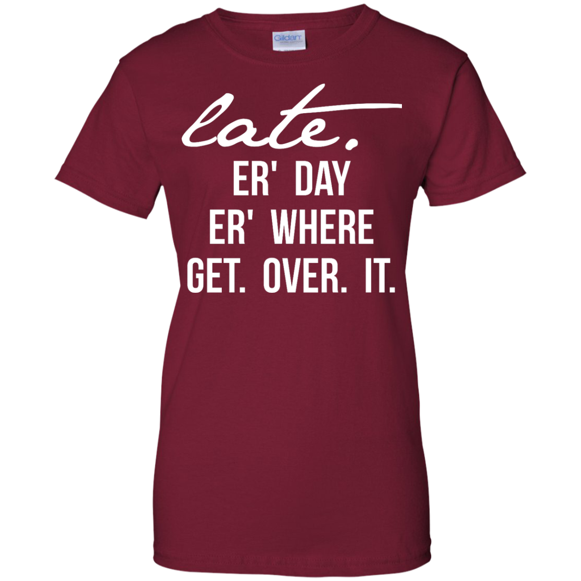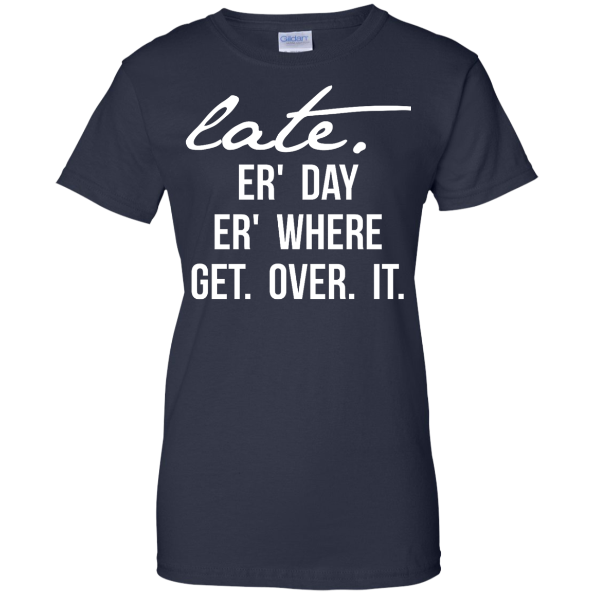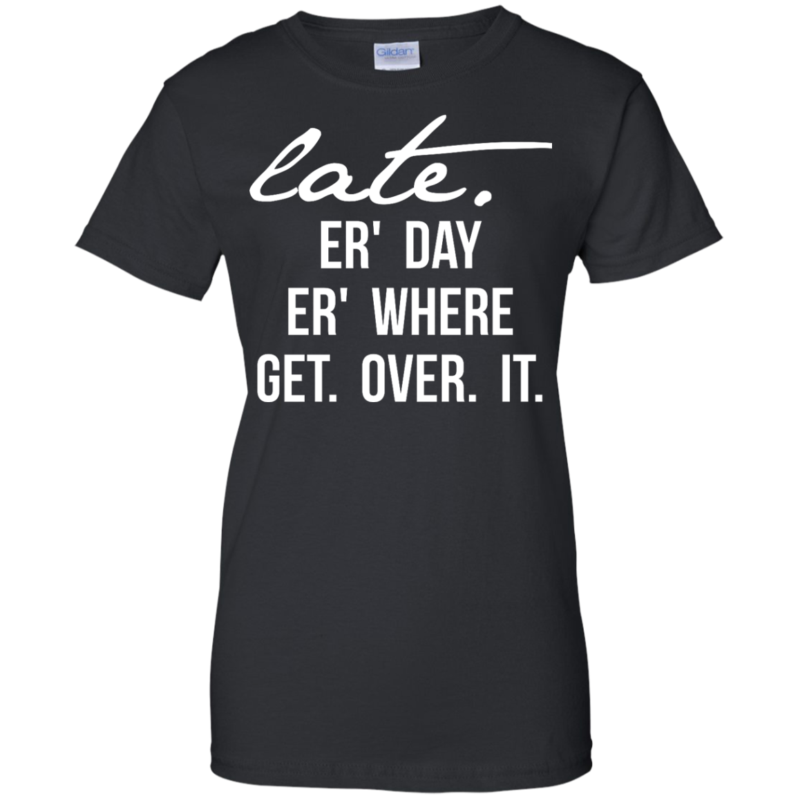 Late Er' Day Er' Where Get Over It shirt. Late all day all where. Get over it. T-shirt, tank top, racer back, hoodie available.