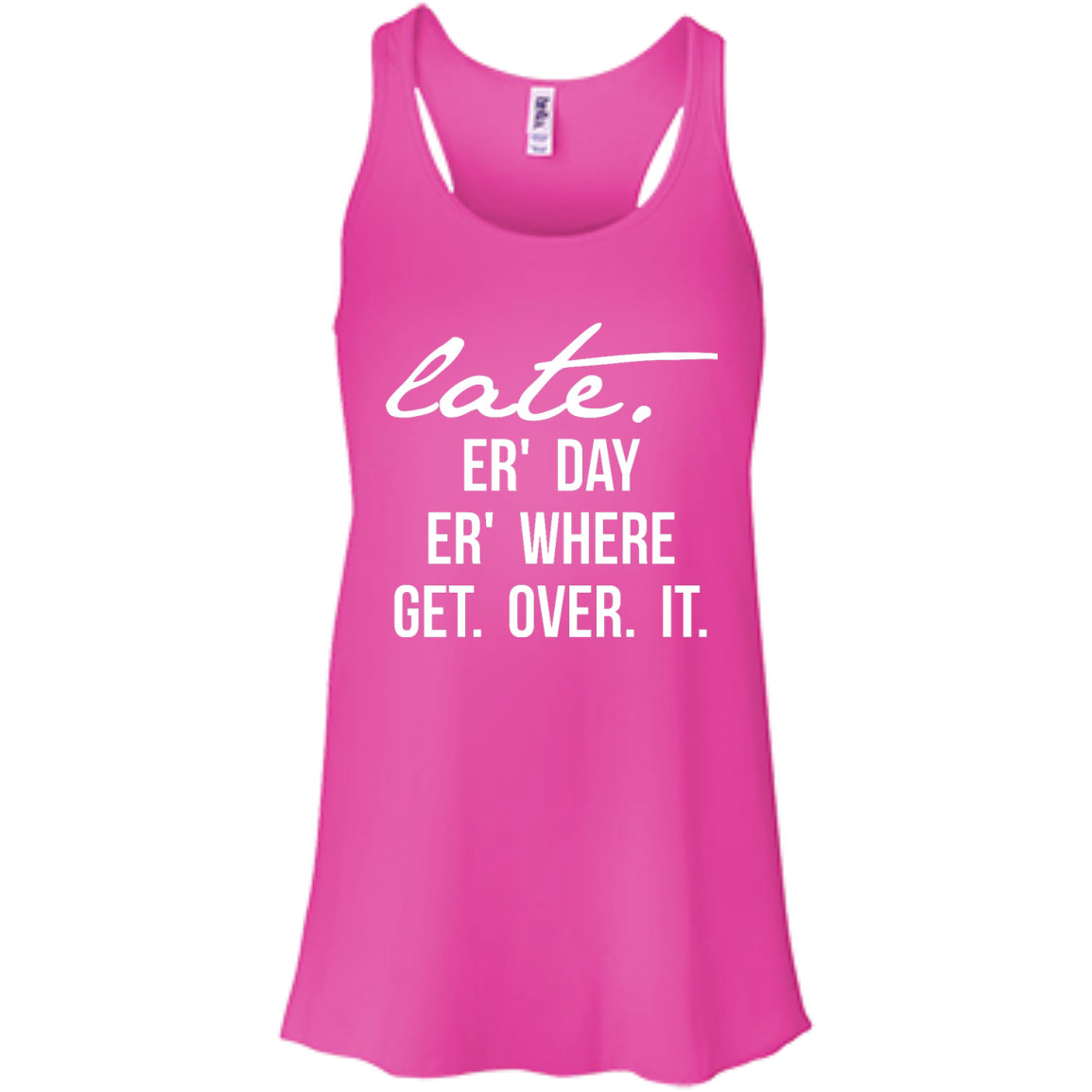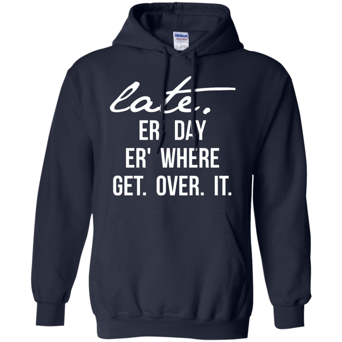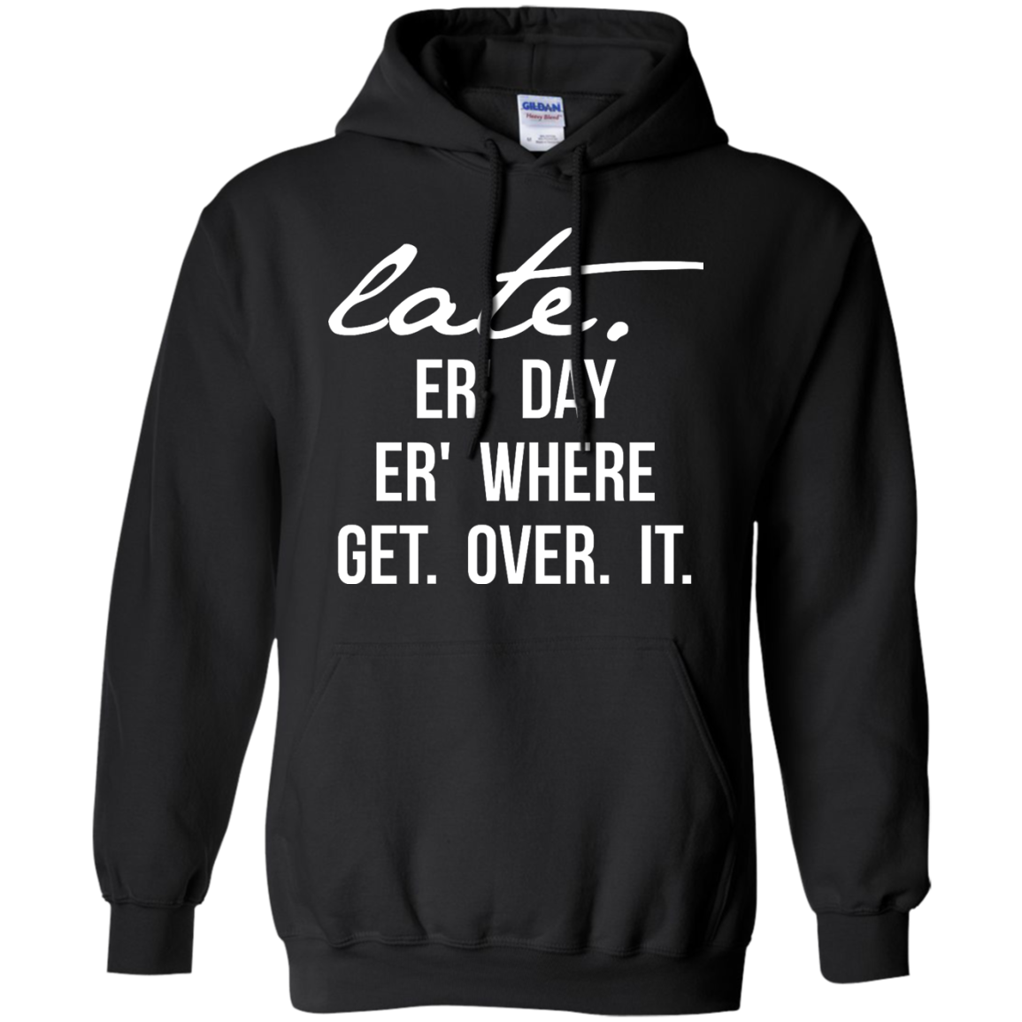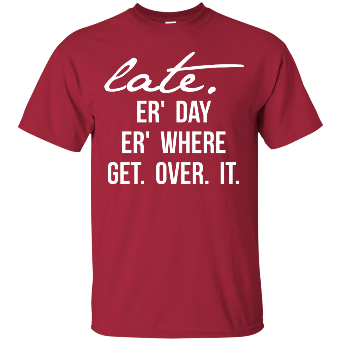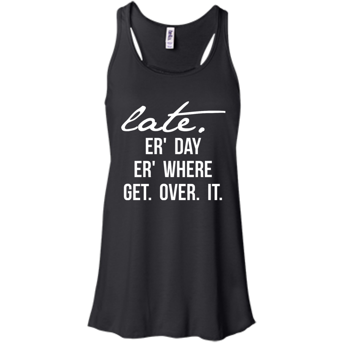 Late Er' Day Er' Where Get Over It shirt. Late all day all where. Get over it. T-shirt, tank top, racer back, hoodie available.