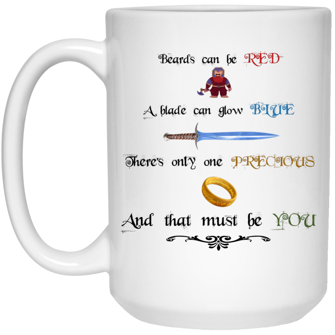 Lord of the Rings mug: beards can be red, a blade can glow blue. There is only one precious and that must be you.A great mug to gift someone you love.