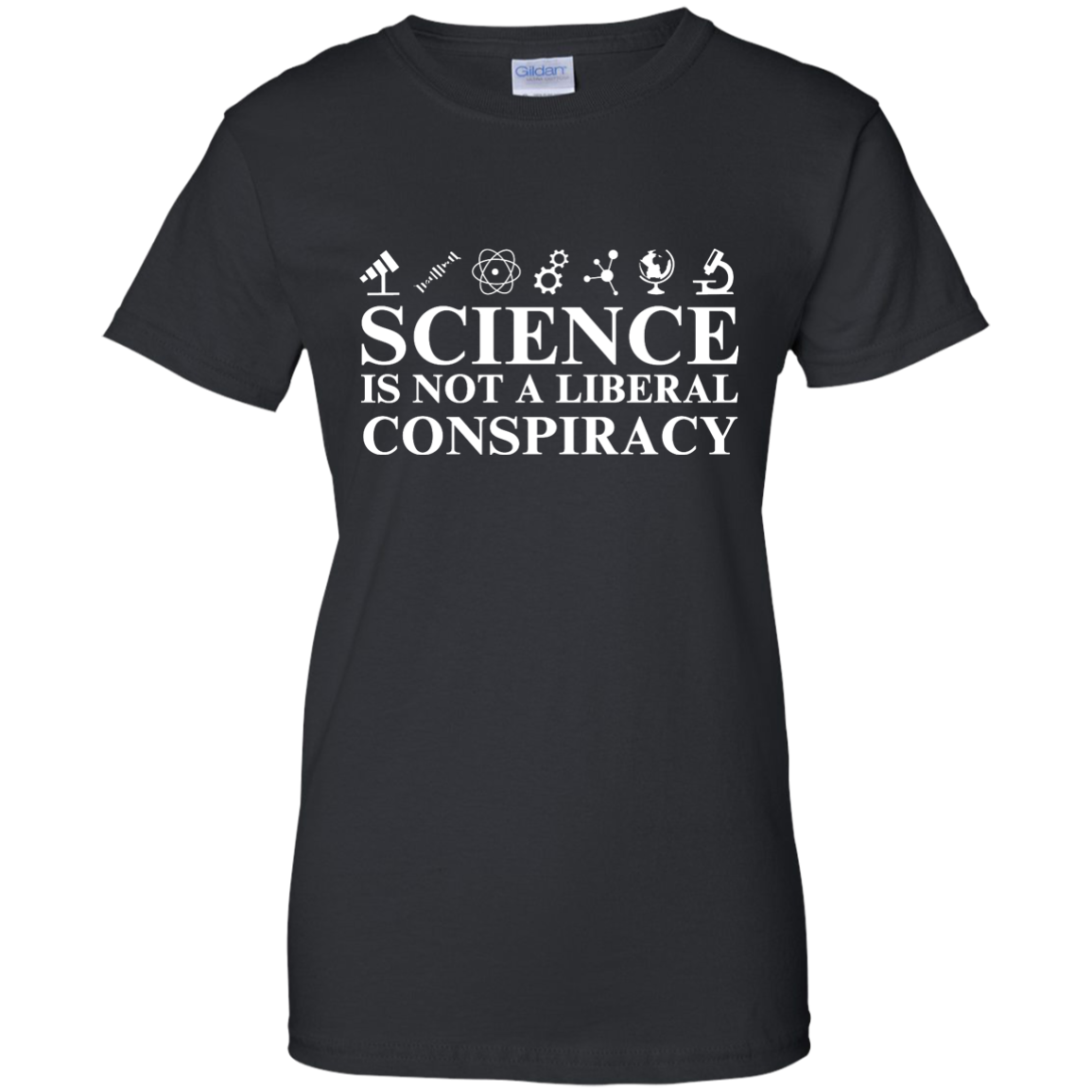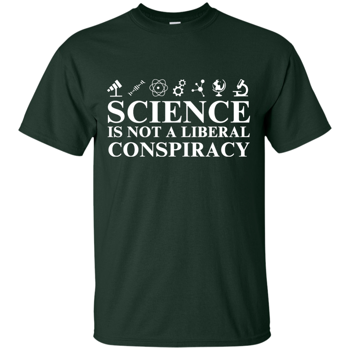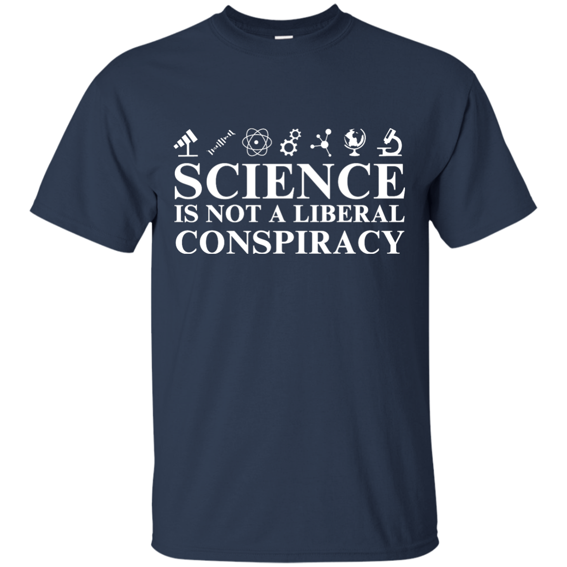 Science is not a Liberal conspiracy shirt: tees, hoodies available. Geek shirts. This shirt for those who love science and hate to see it manipulated, denied or attacked by politicians.