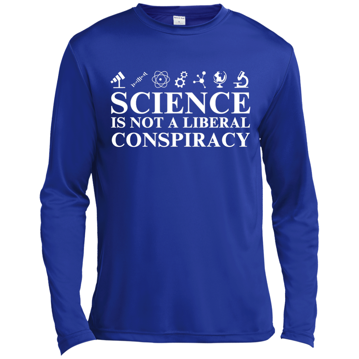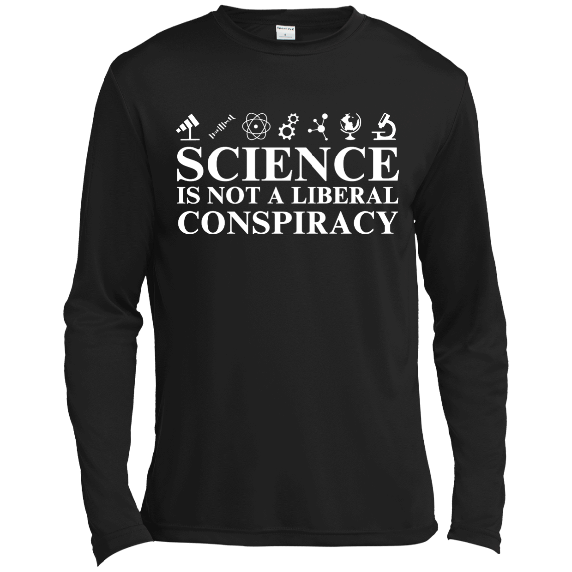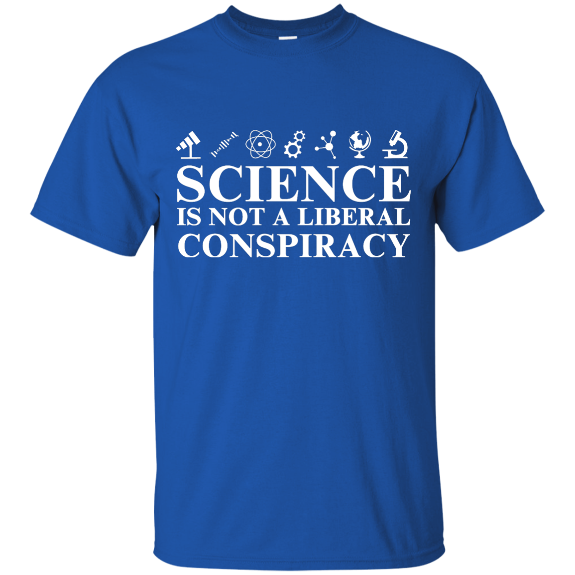 Science is not a Liberal conspiracy shirt: tees, hoodies available. Geek shirts. This shirt for those who love science and hate to see it manipulated, denied or attacked by politicians.