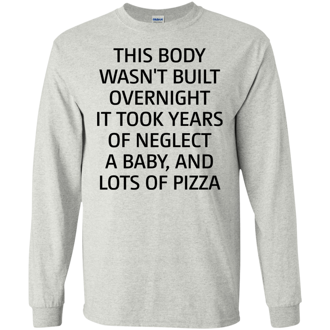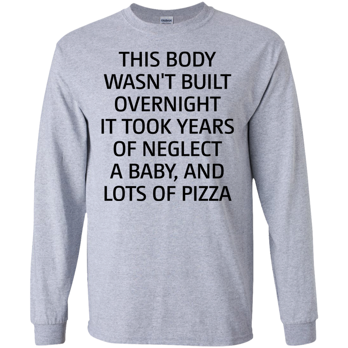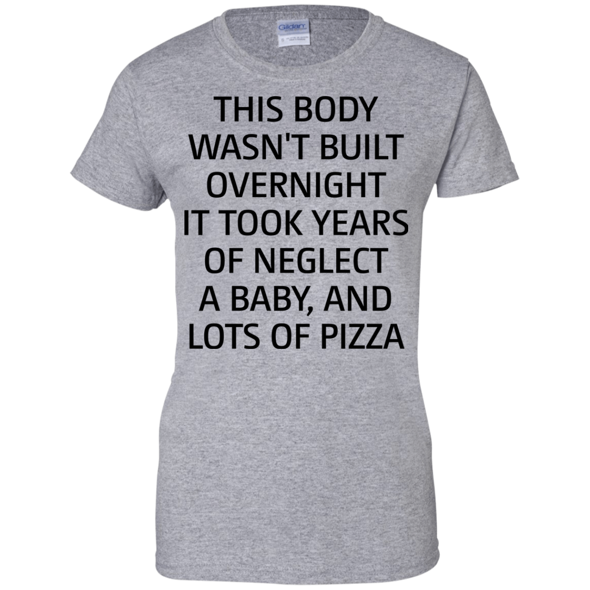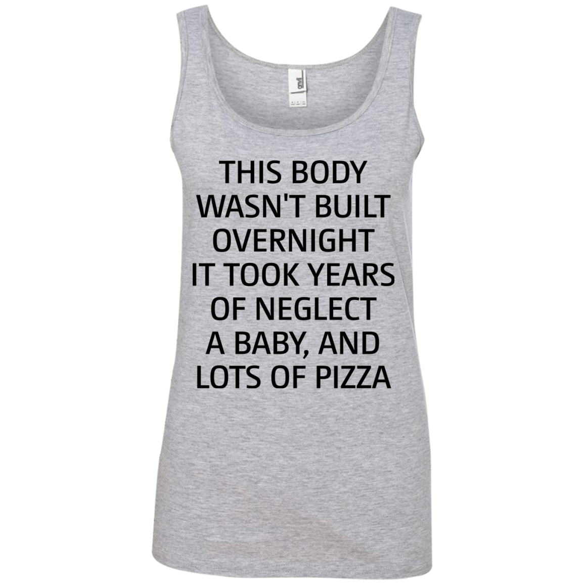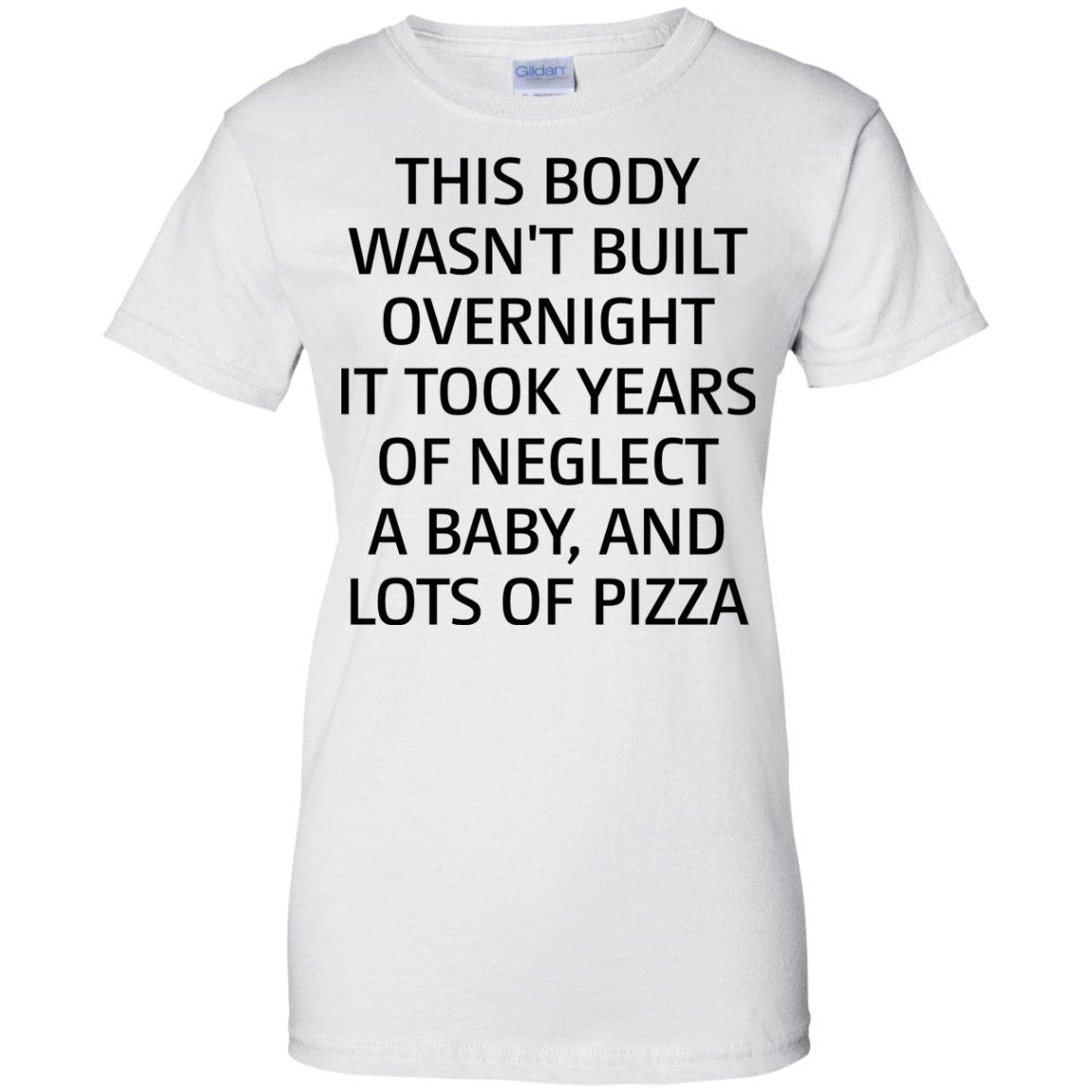 This body wasn't built overnight it took years of neglect a baby and lots of pizza shirt, tank, long sleeve available.