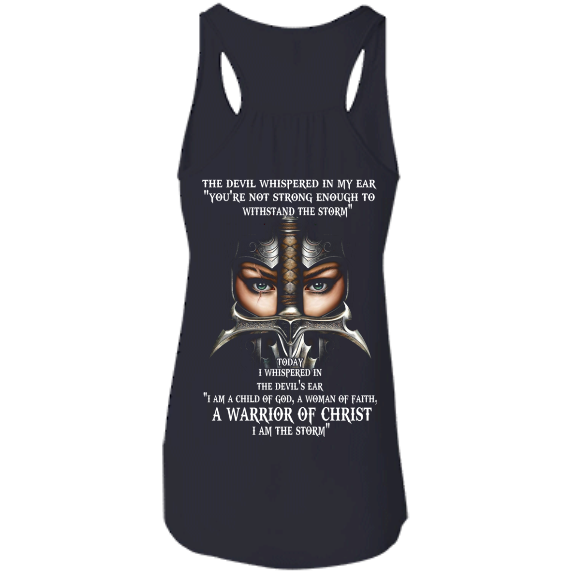 Woman warrior: The Devil whispered in my ear, “You're not strong enough to withstand the storm.” Today I whispered in the Devil's car, “I am the storm.” T-shirt, hoodie, racerback, tank top... available.