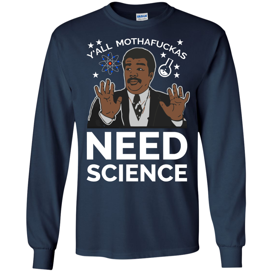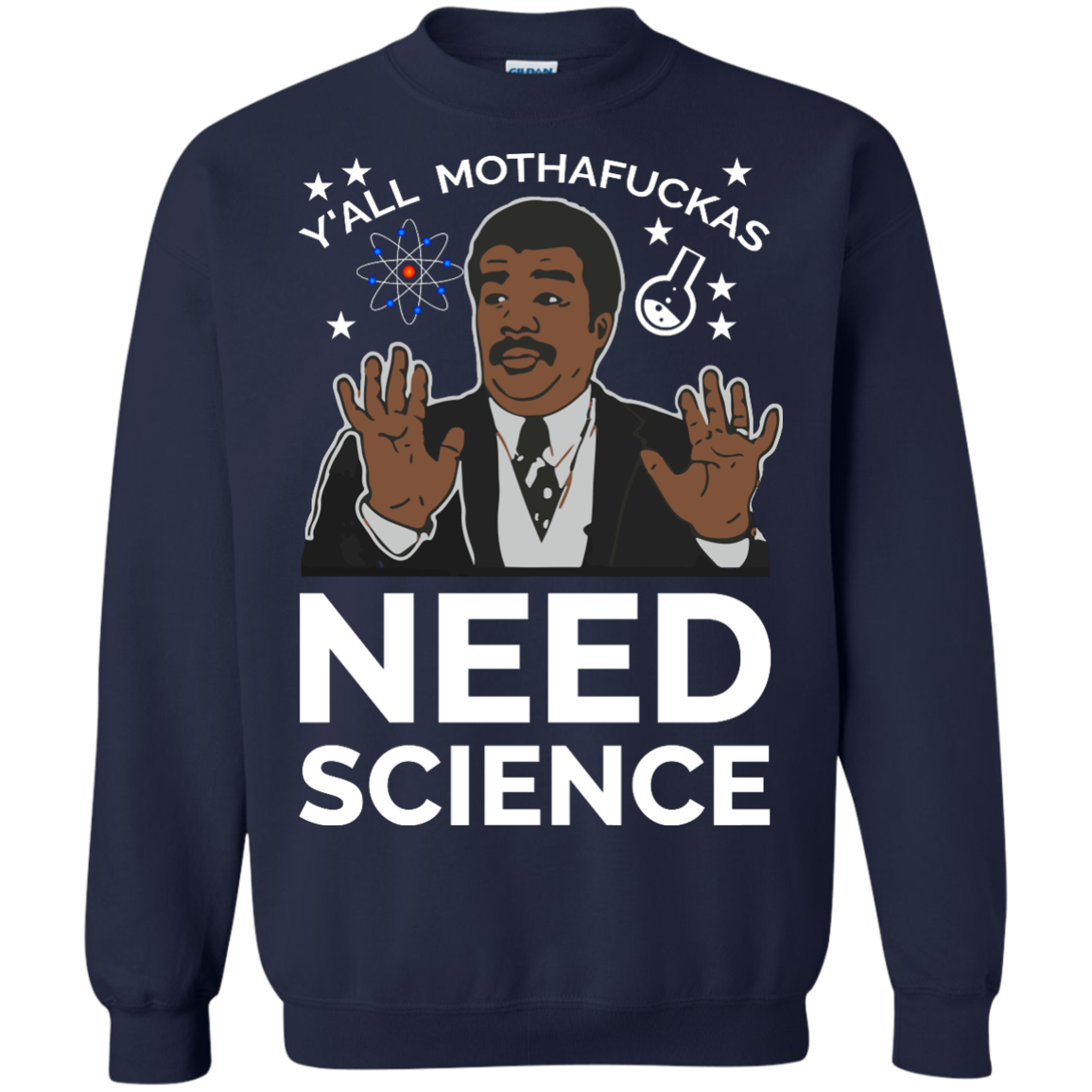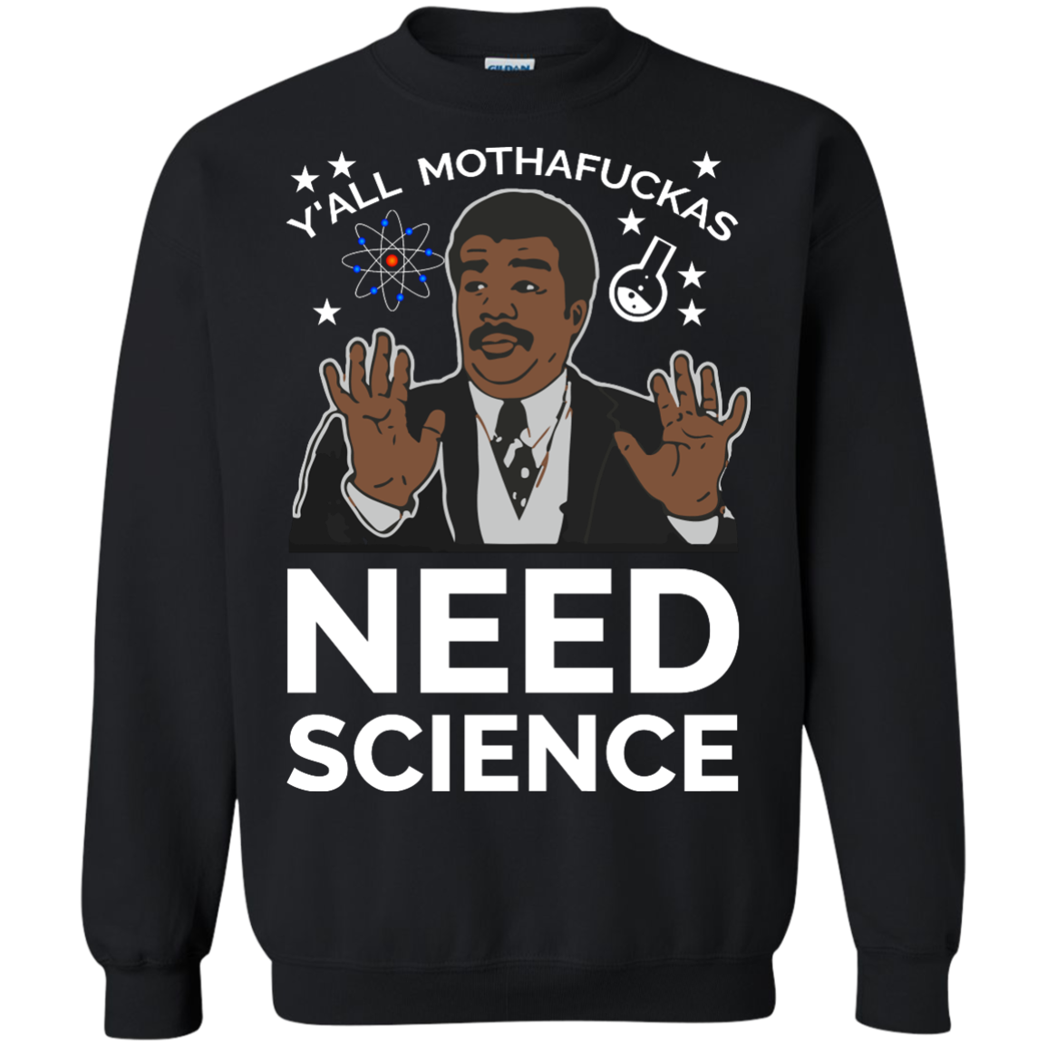 Y All Motherfuckers Need Science t-shirt, sweater, long sleeve, hoodie available. Neil DegrasseTyson thinks all you mothafuckas need science.