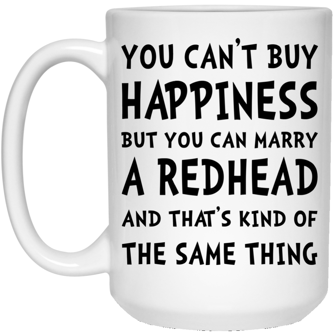 White mugs. You can't buy happiness but you can marry redhead and that is kind of the same thing mug