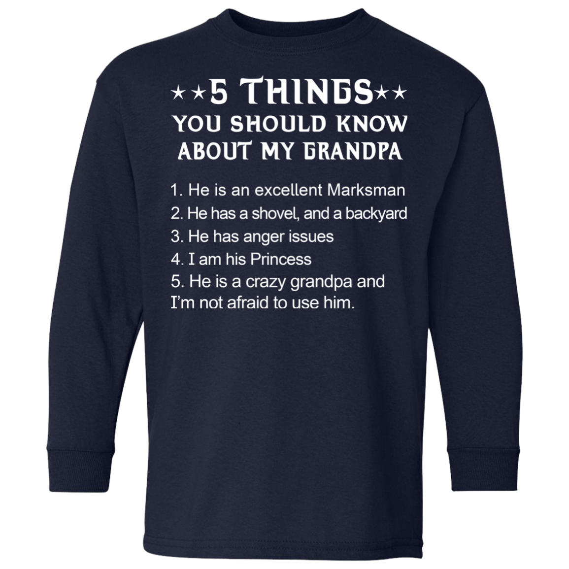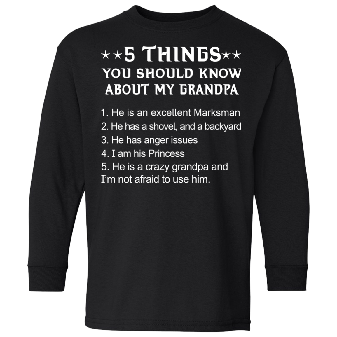 • Youth, Kid shirts. 5 Things You Should Know My Grandpa Shirt, Hoodie T-shirt, long sleeve, hoodie...available.