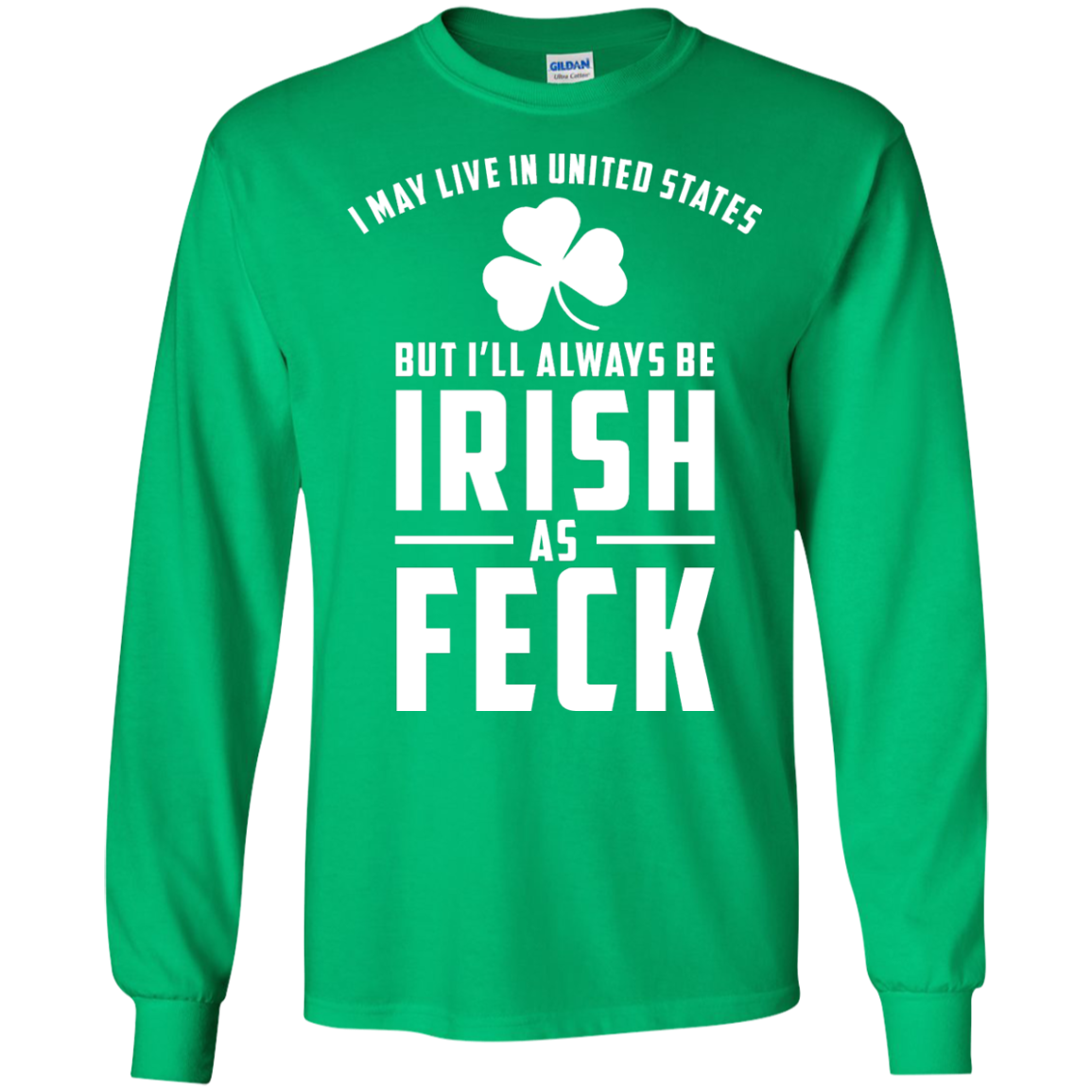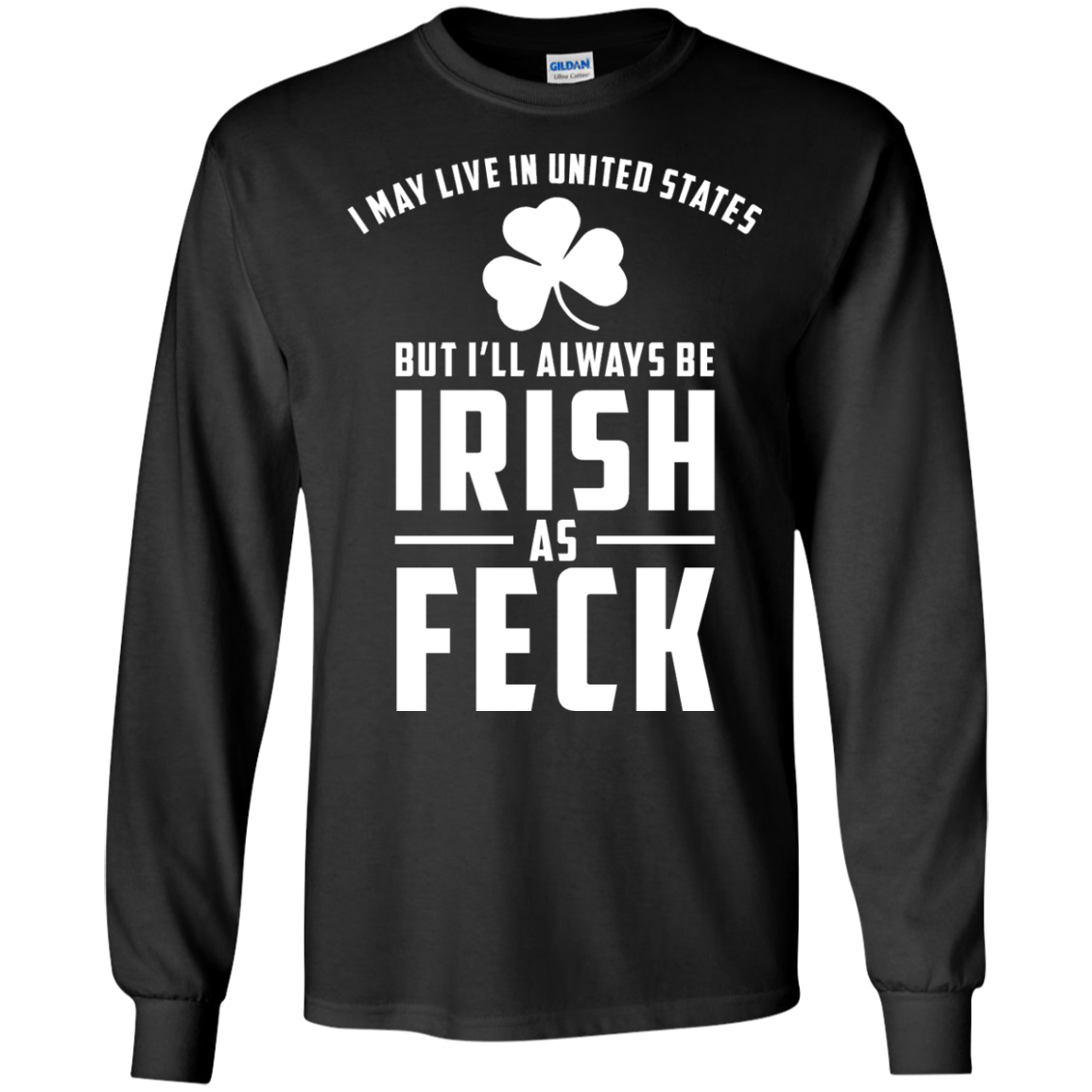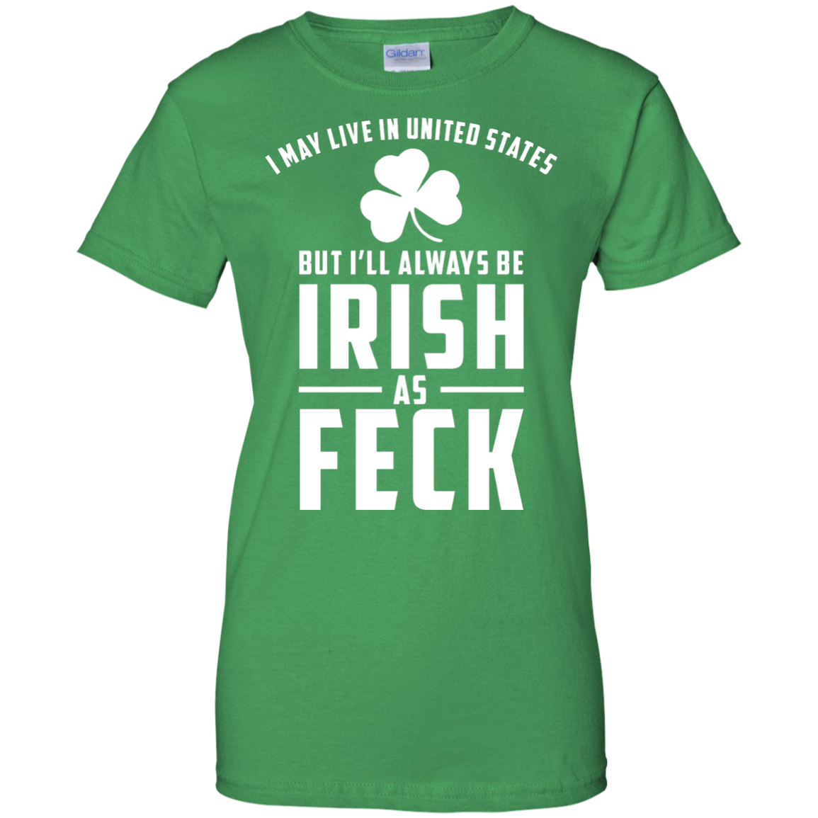 Saint Patrick Day T-shirt, I May Live in the United States But I Will Always be Irish as Feck Shirt, Hoodie, Tank available.