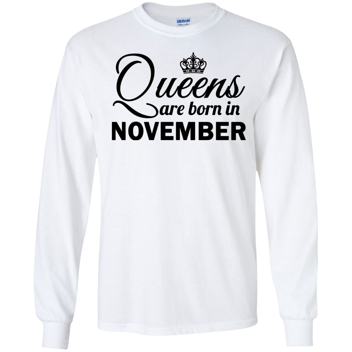 A birthday gift for girls who born in November: Queens are born in November shirt, tank top, sweater available.