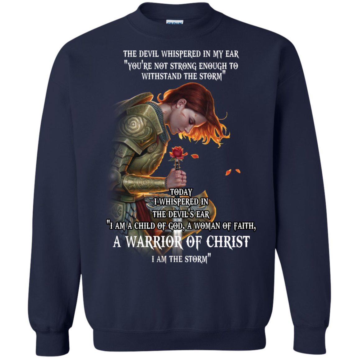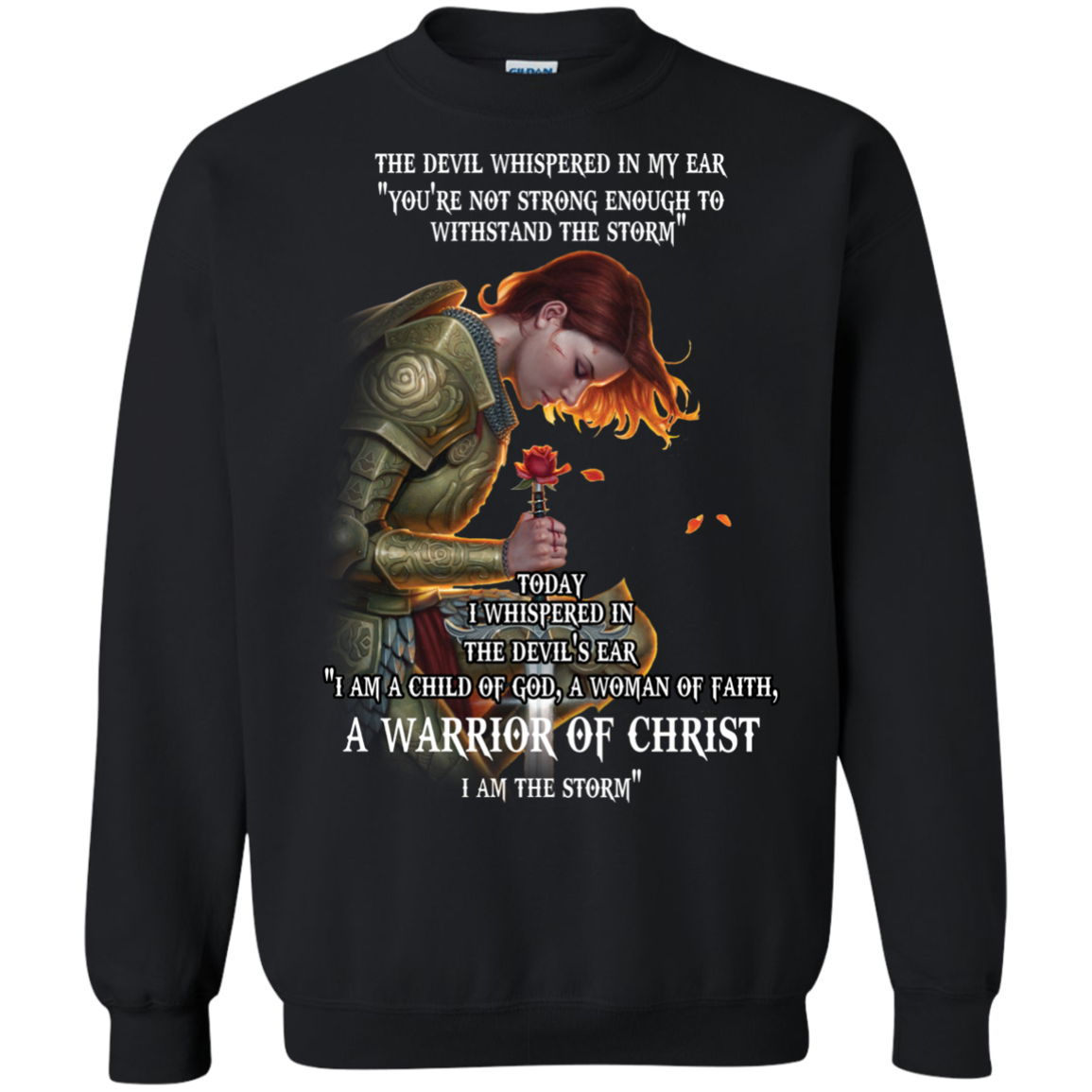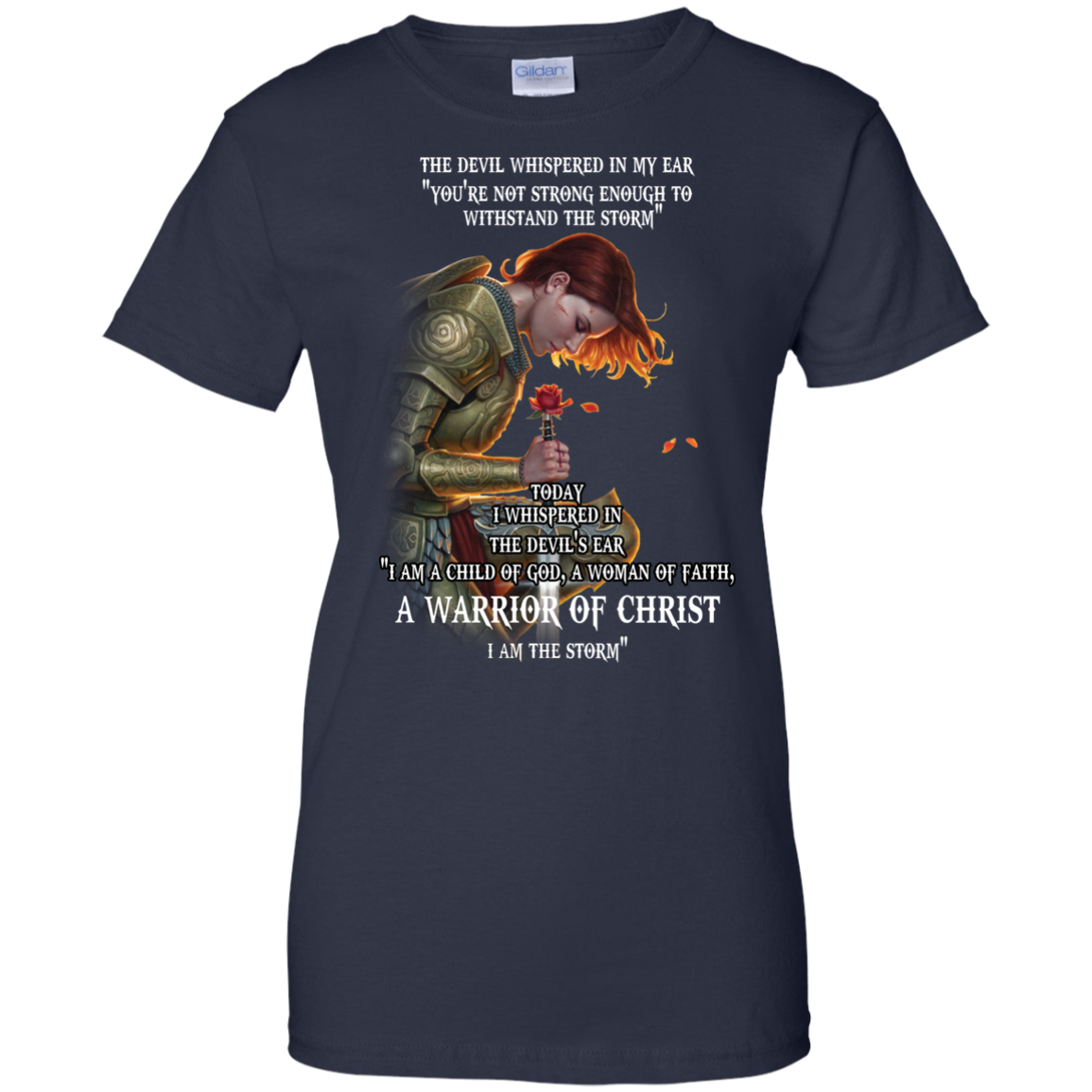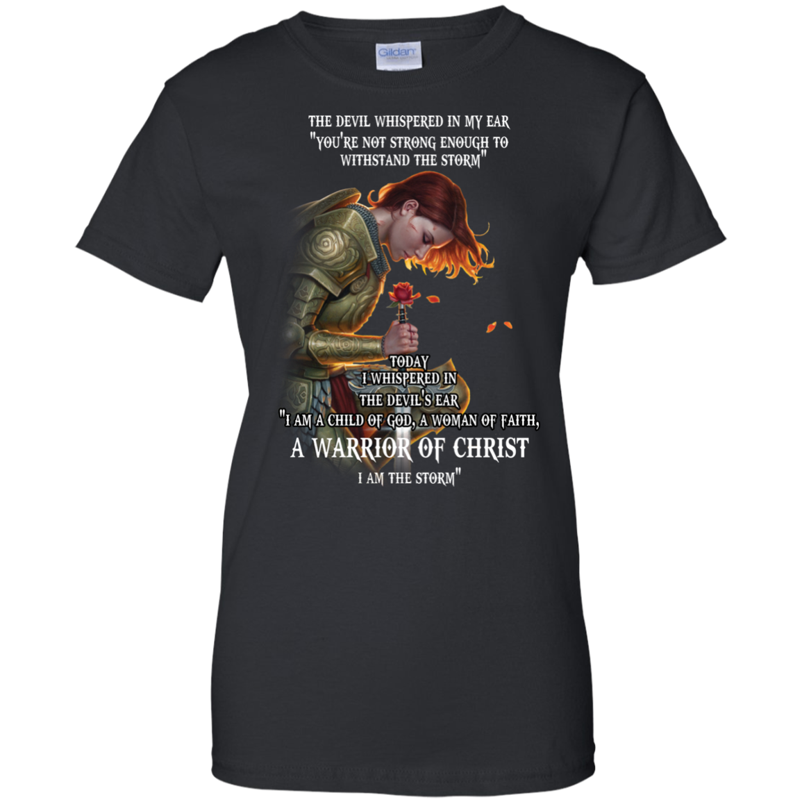 Rose Red: The devil whispered in my ear you're not strong enough to withstand the storm" today I whispered in the devil's ear "I am a child of God, a woman of faith, a warrior of Christ I am the storm" shirt, hoodie