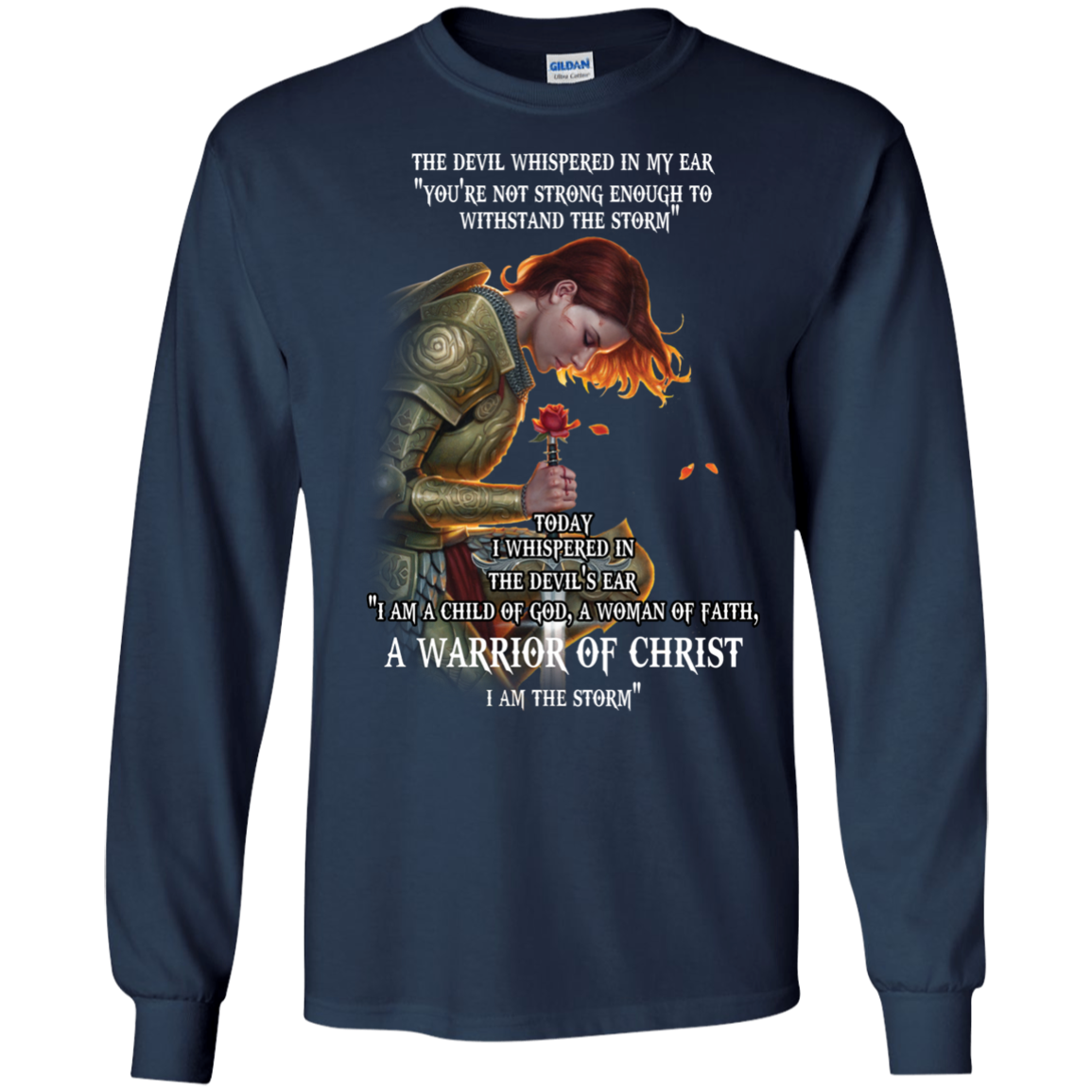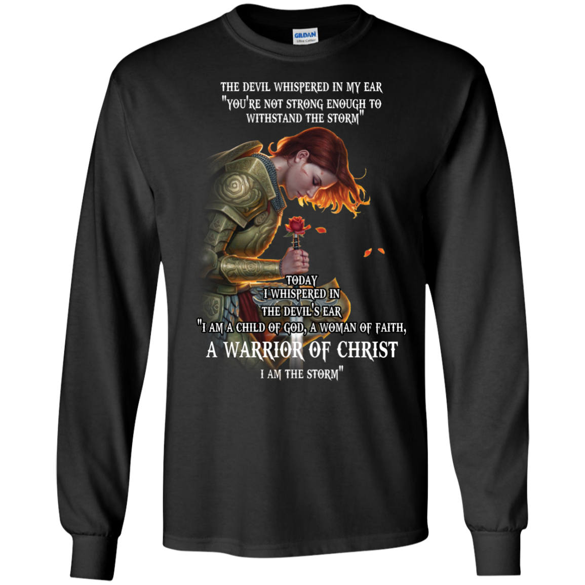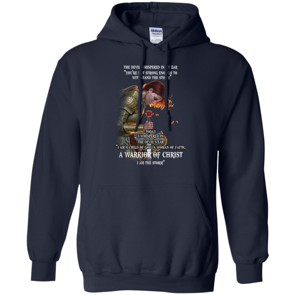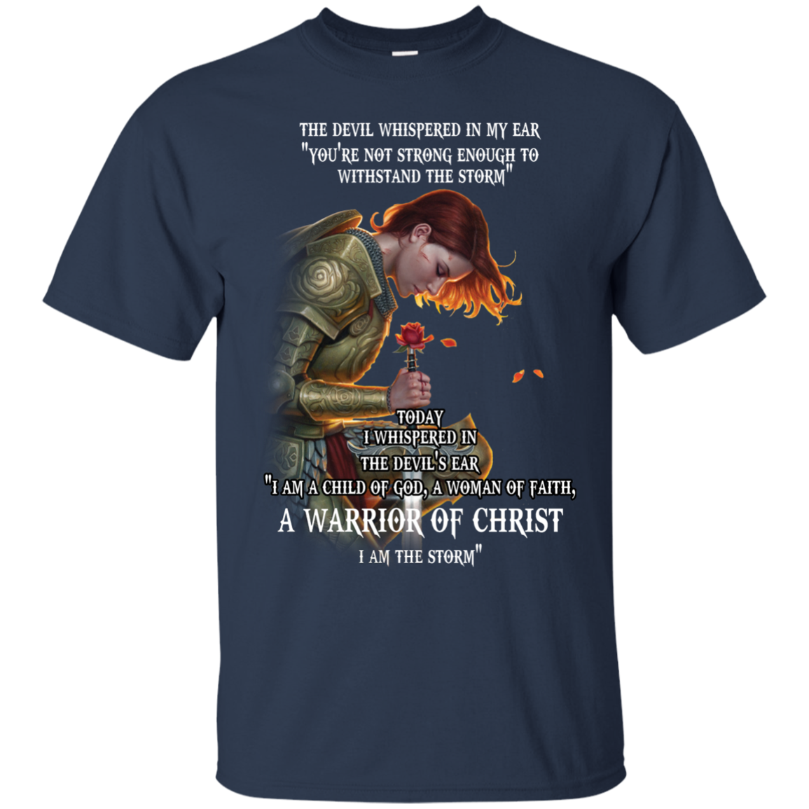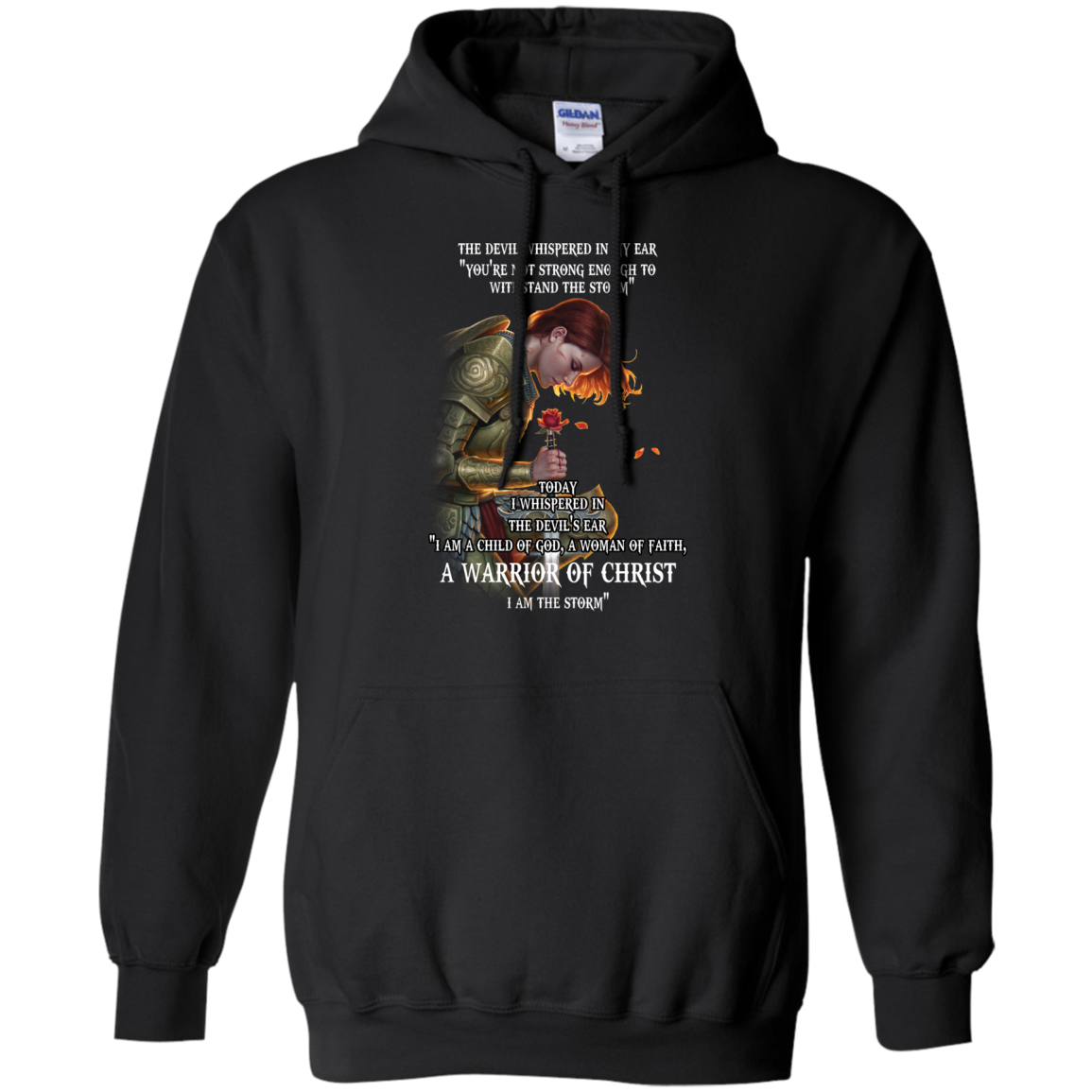 Rose Red: The devil whispered in my ear you're not strong enough to withstand the storm" today I whispered in the devil's ear "I am a child of God, a woman of faith, a warrior of Christ I am the storm" shirt, hoodie
