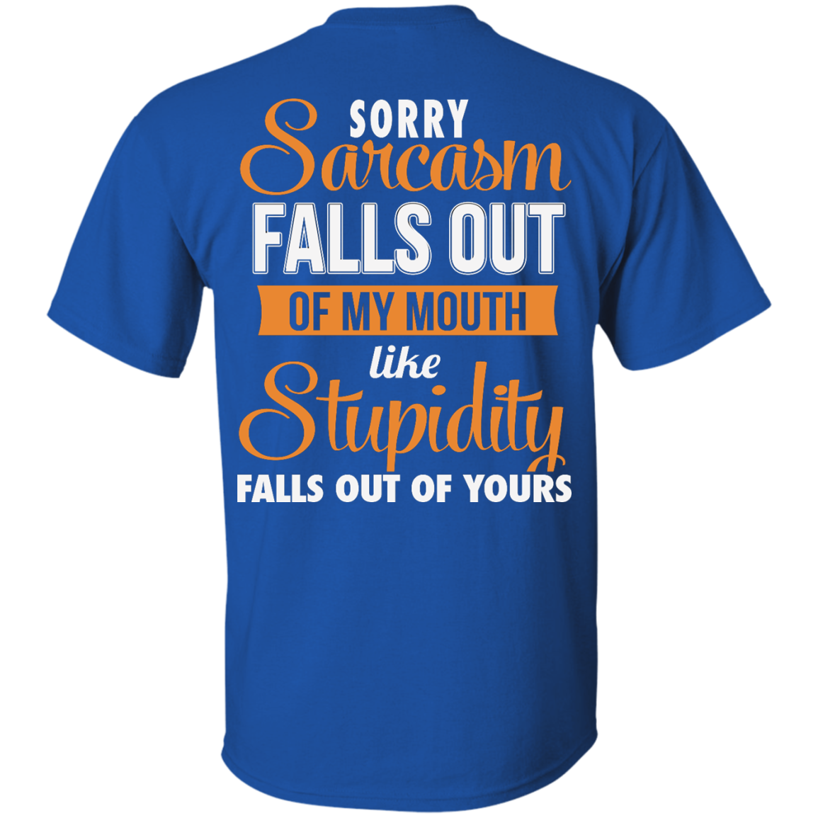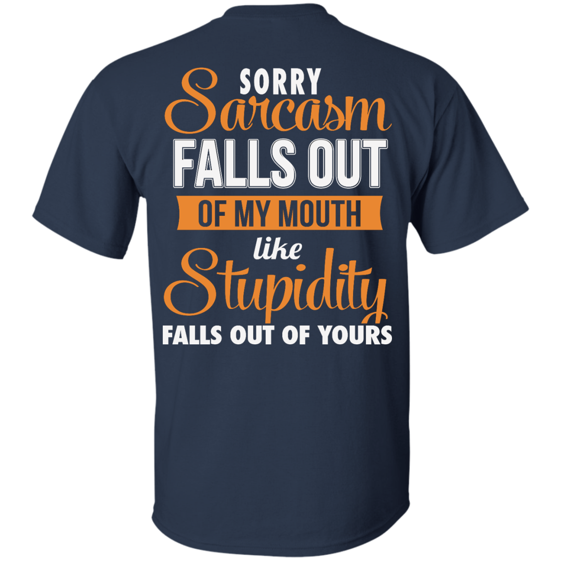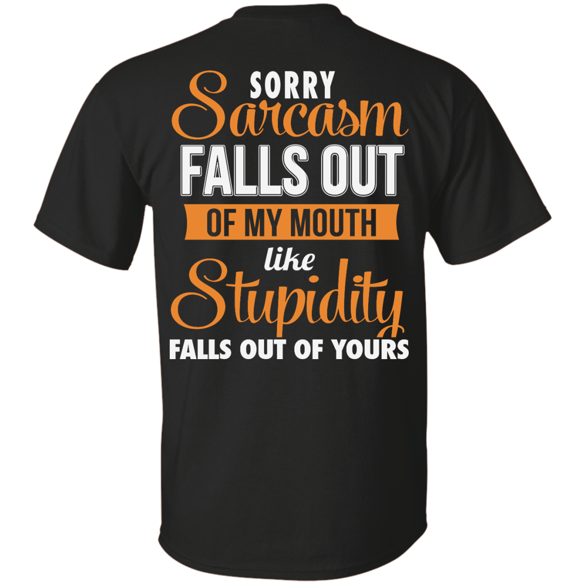 Sorry, sarcasm falls out of my mouth, like stupidity falls out of yours t-shirt, tank top, hoodie... Back side design