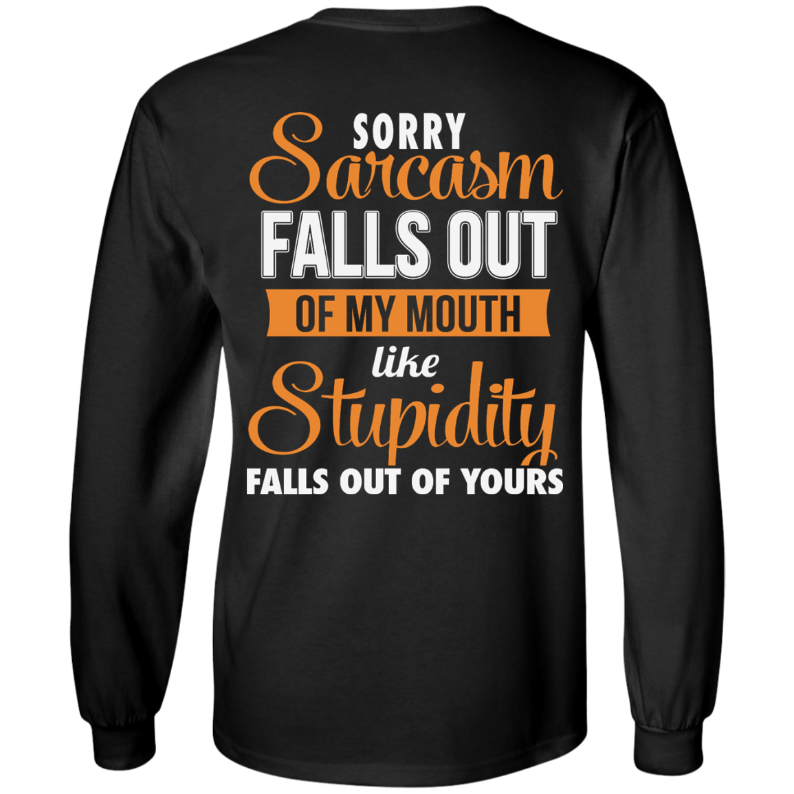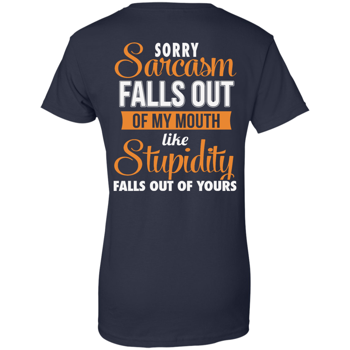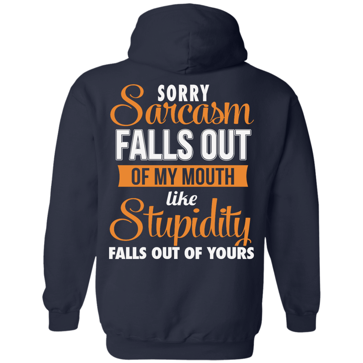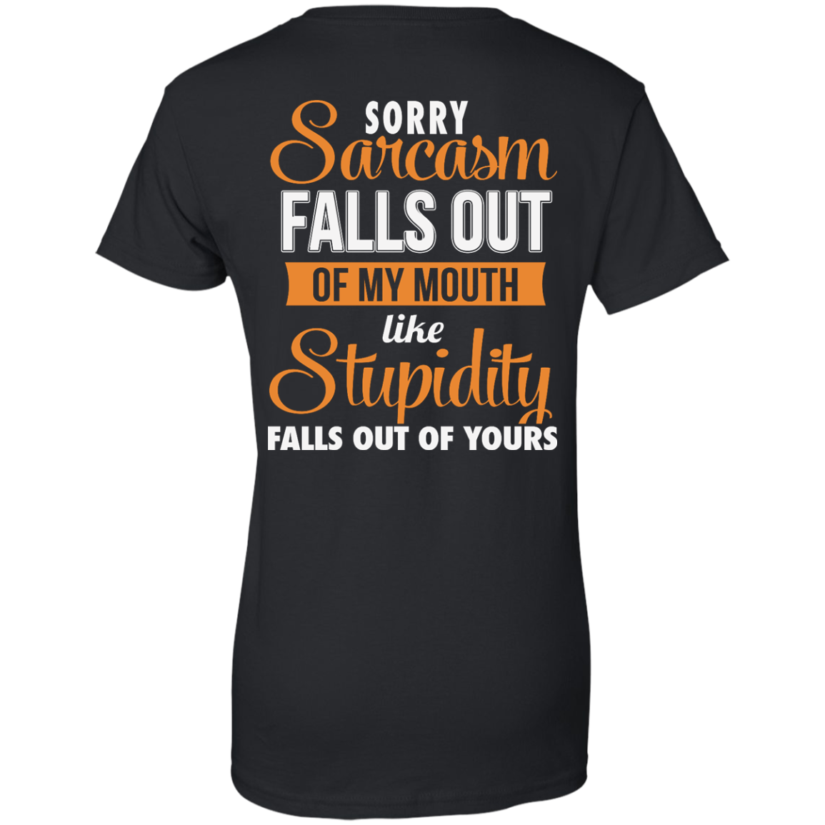 Sorry, sarcasm falls out of my mouth, like stupidity falls out of yours t-shirt, tank top, hoodie... Back side design