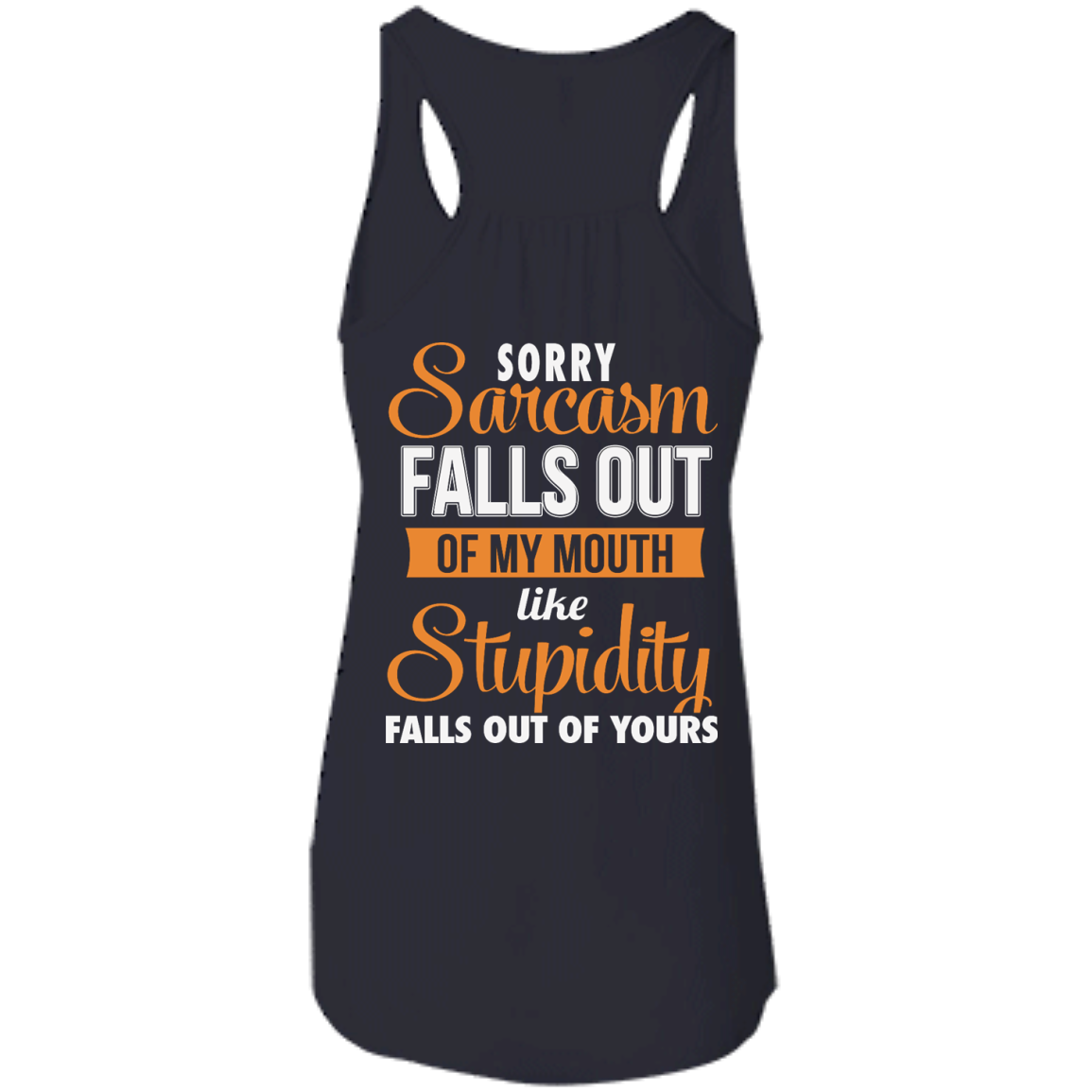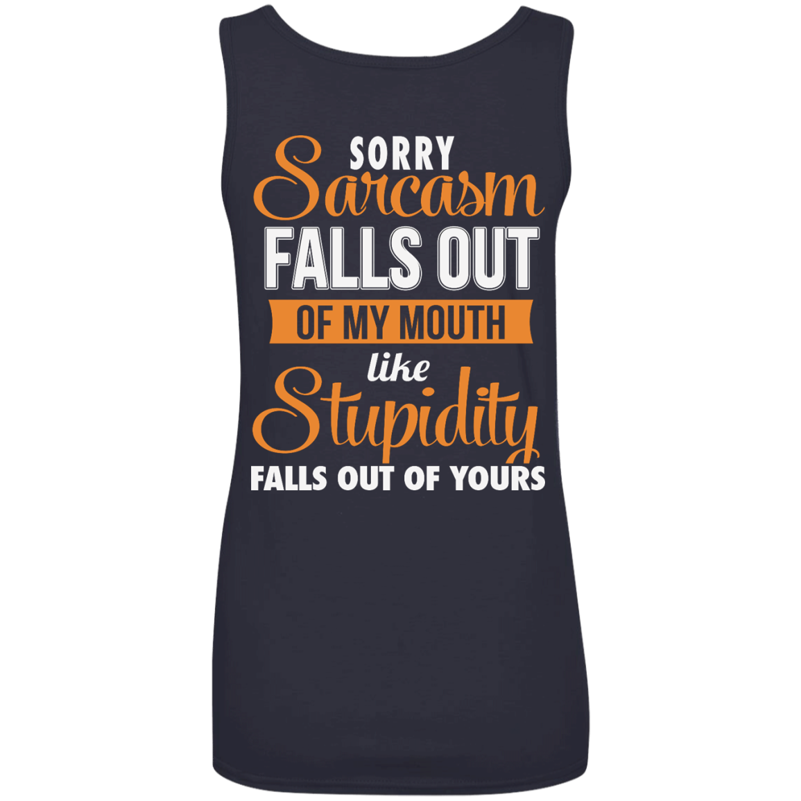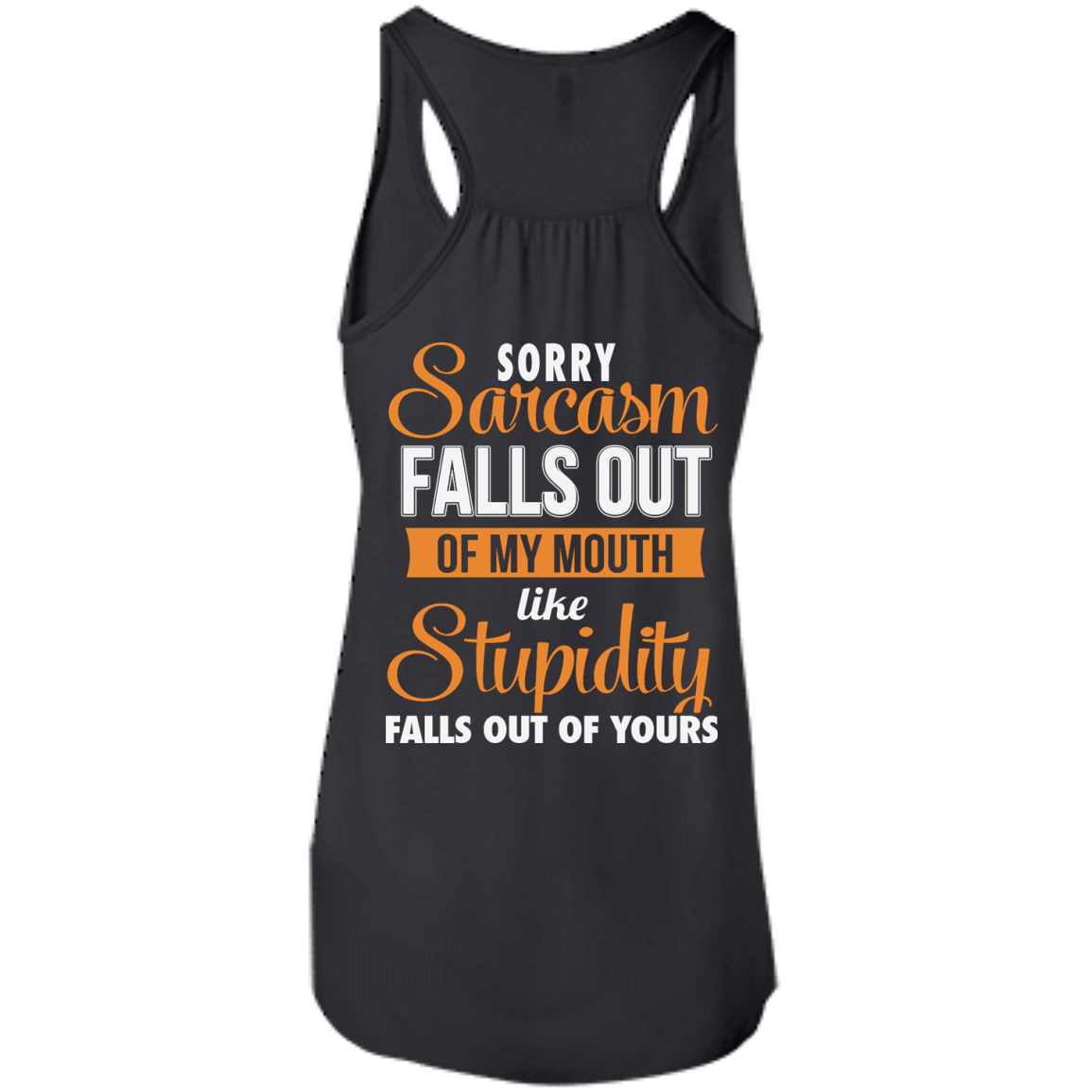Sorry, Sarcasm Falls Out of my Mouth like stupidity t-shirt, tank top