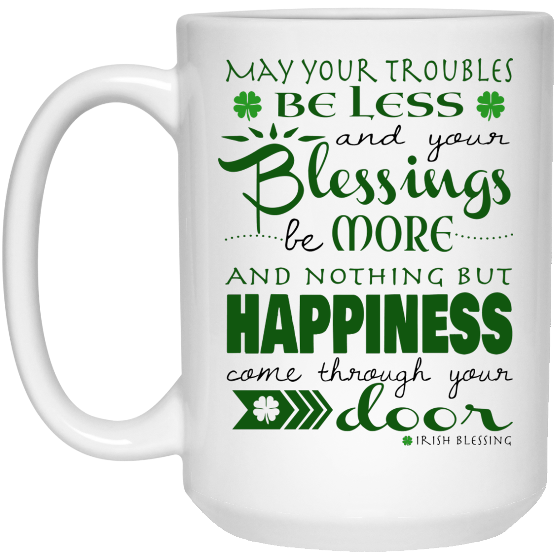St Patrick's day Irish Blessing mug: May your troubles be less and your blessing be more and nothing but happiness came through your door.