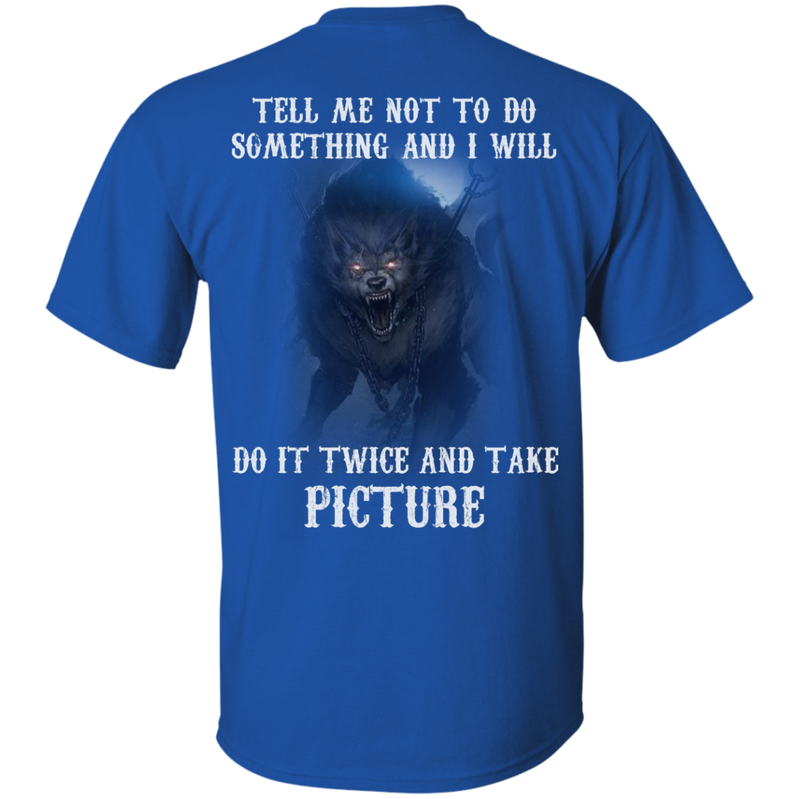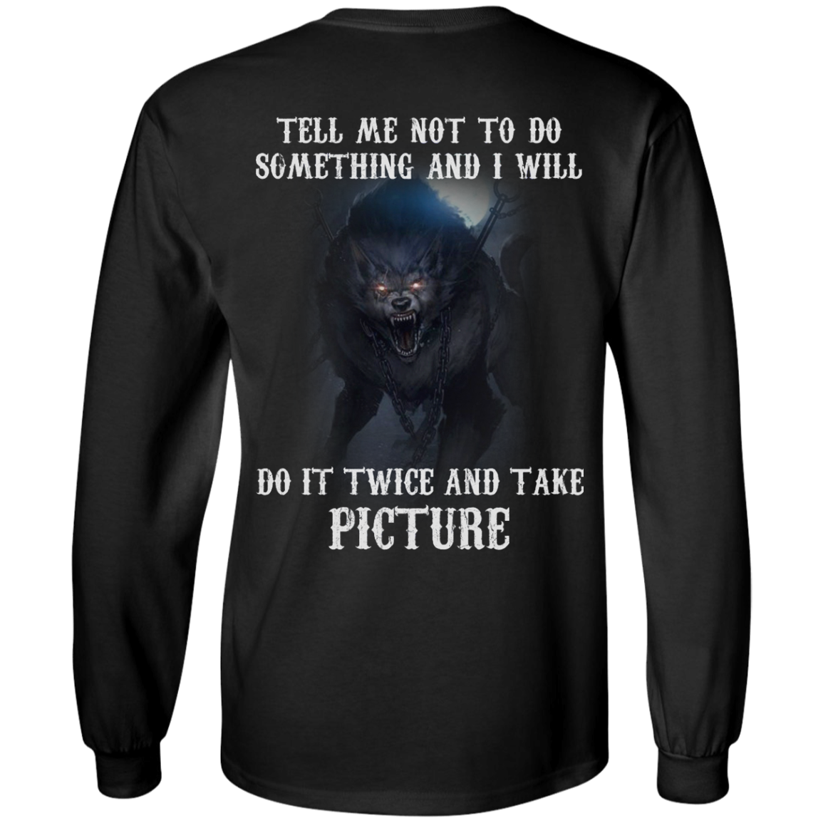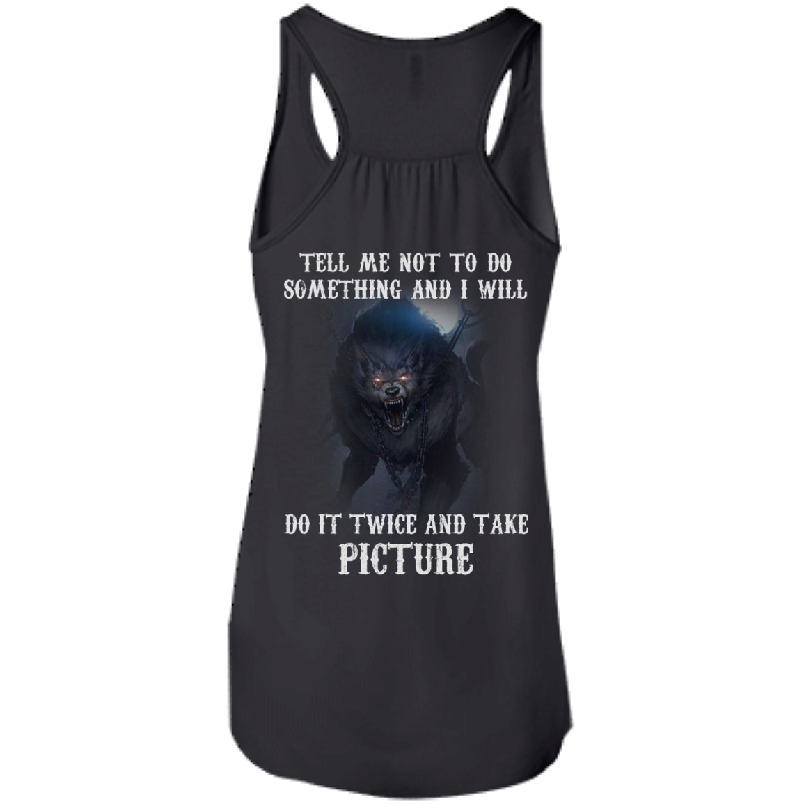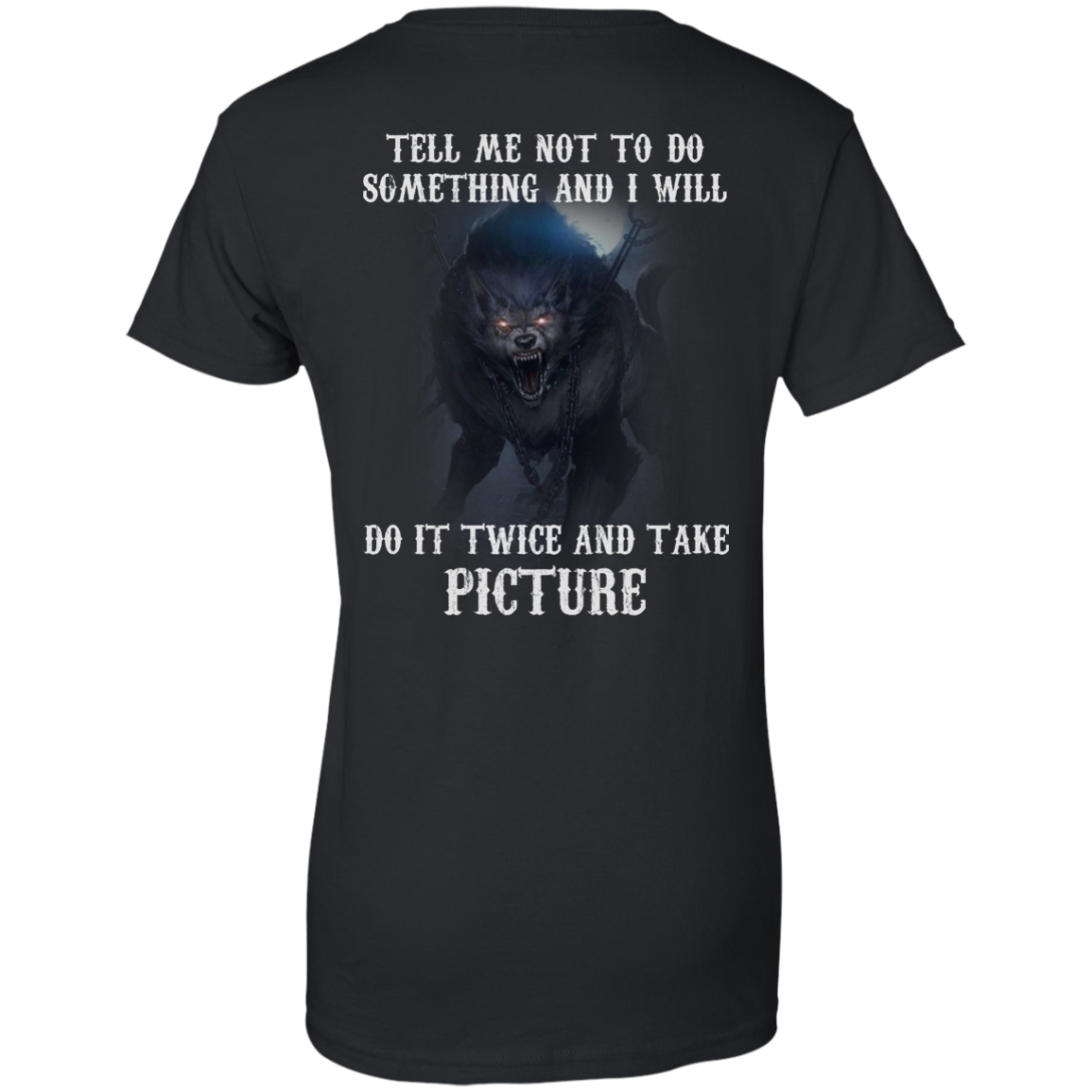 Wolf: Tell me not to do something and I will do it twice and take picture shirt, tank.. available. back side