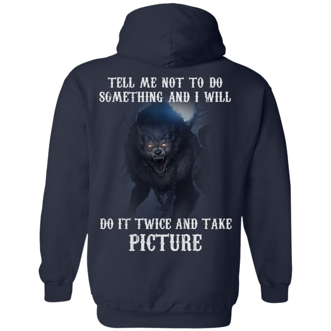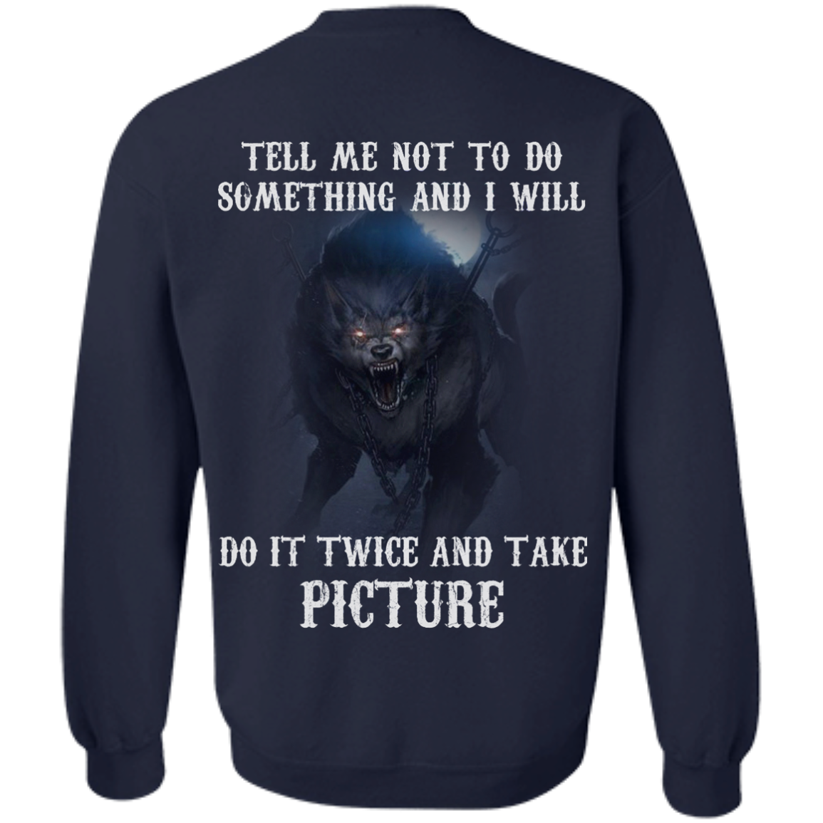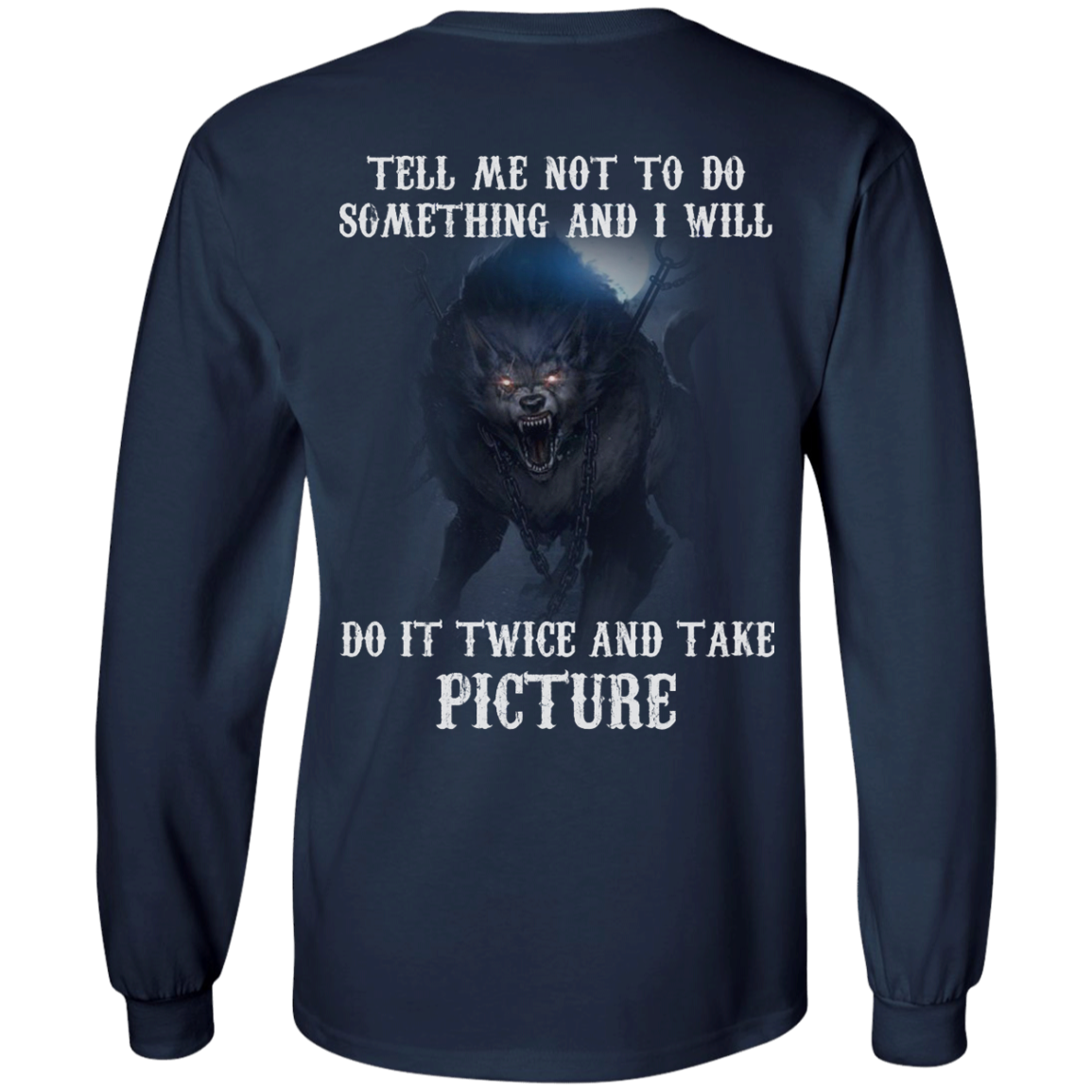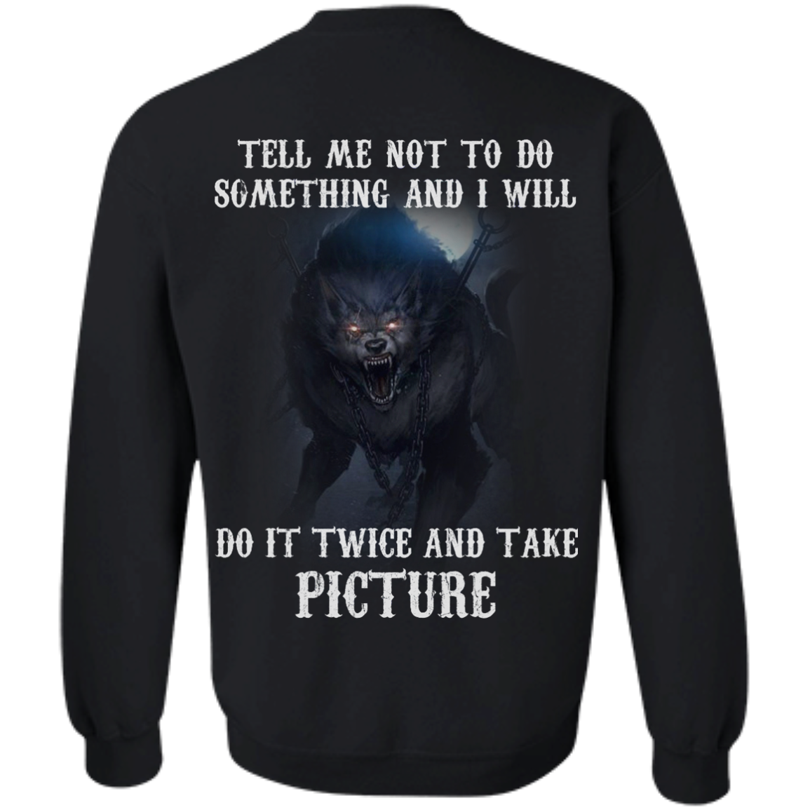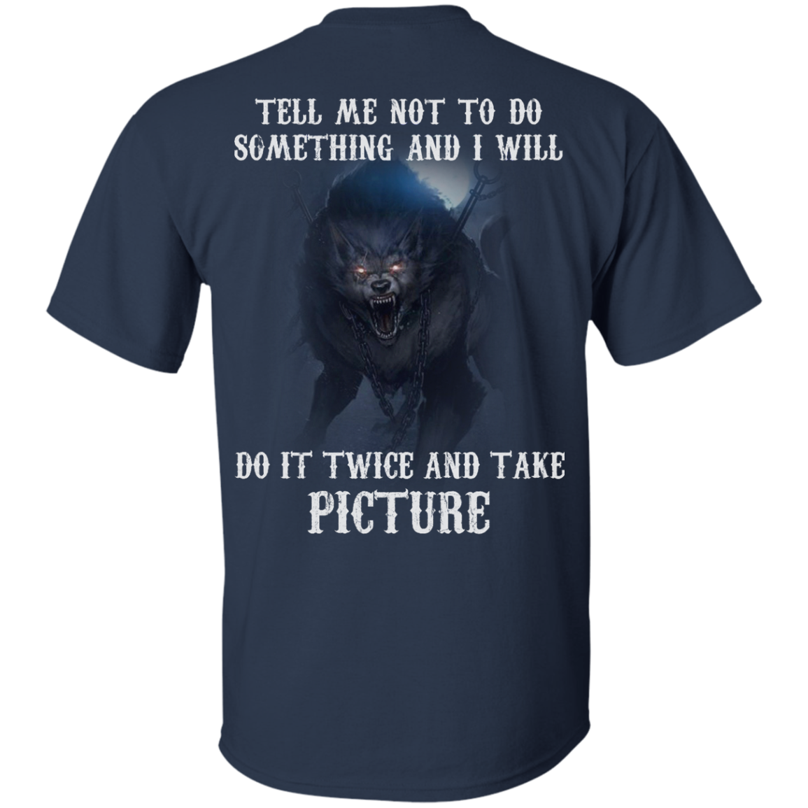 Wolf: Tell me not to do something and I will do it twice and take picture shirt, tank.. available. back side